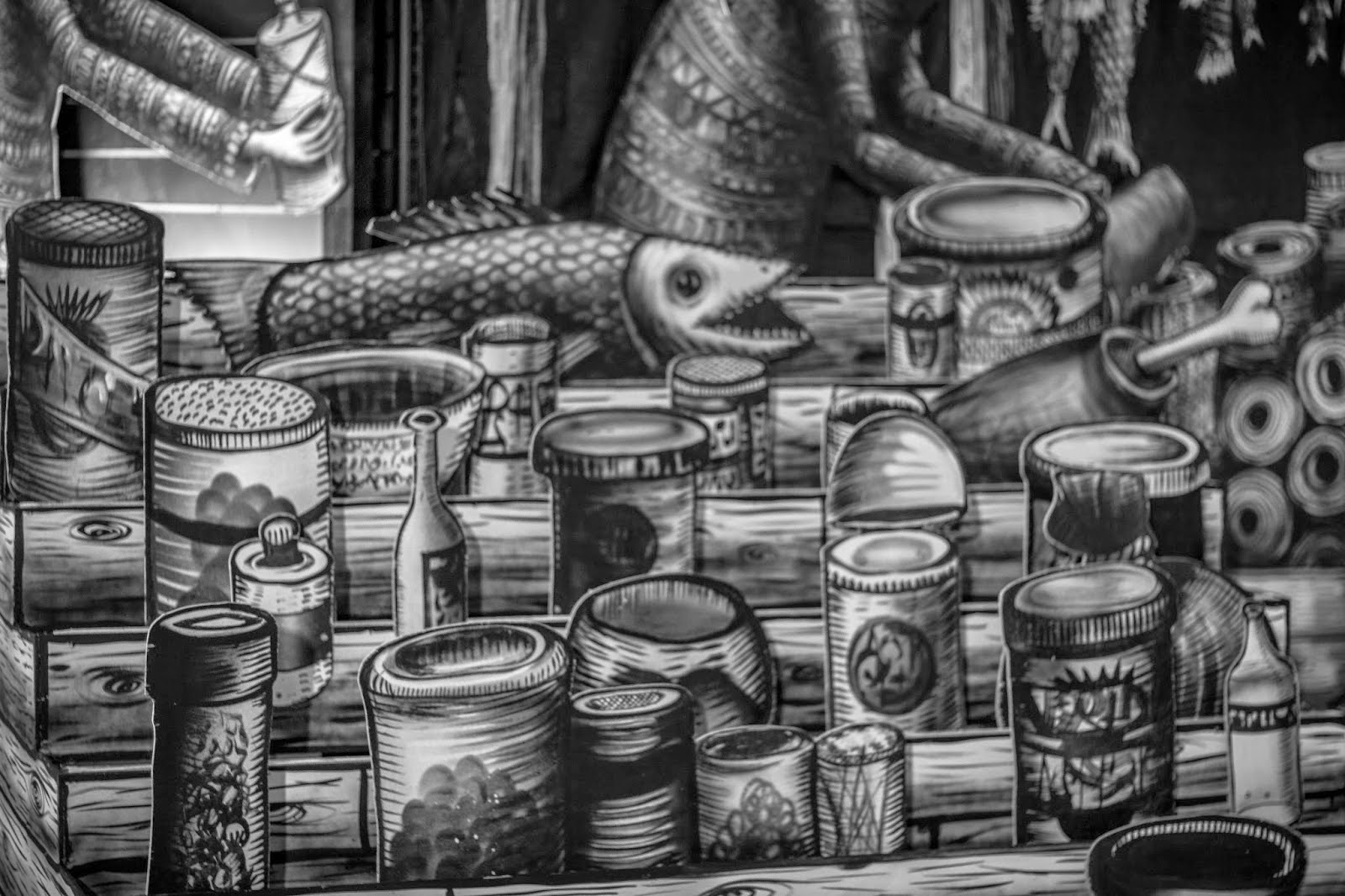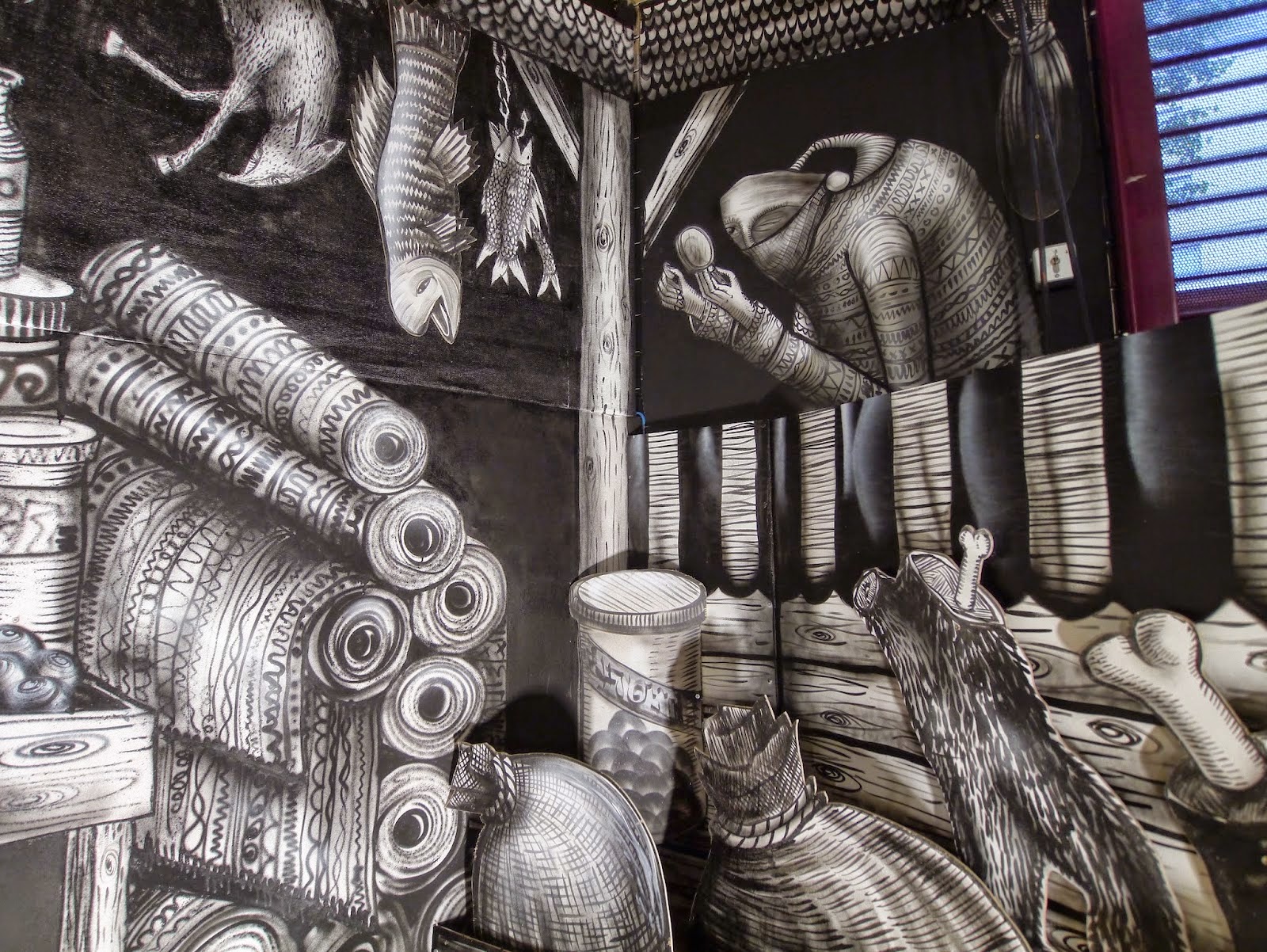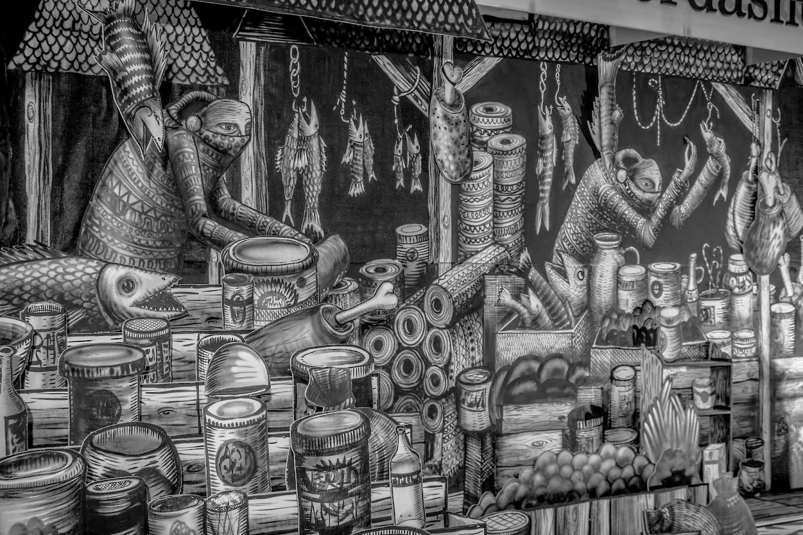 After his piece for the Royal Opera House in London, Phlegm seems to be focusing on creating new installations. The British artist just wrapped up yet another fantastic and intricate indoor piece for the Sheffield Bazaar in Sheffield, UK. Entitled “Market Traders”, this new creation by Phlegm is filled with hundreds of amazing details which needs to be seen in the flesh to be fully appreciated. The area where this piece was created is also the oldest part of sheffield as a settlement and has long been a site for market traders. It’s also the area where sheffield castle once stood long ago.