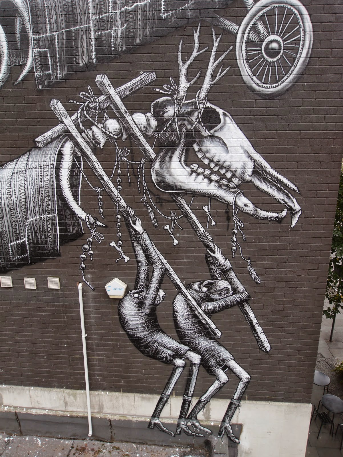 In town for the newest edition of the Empty Walls Street Art Festival, the British muralist painted this signature artwork which is based on he very old welsh tradition Mari Lwyd.