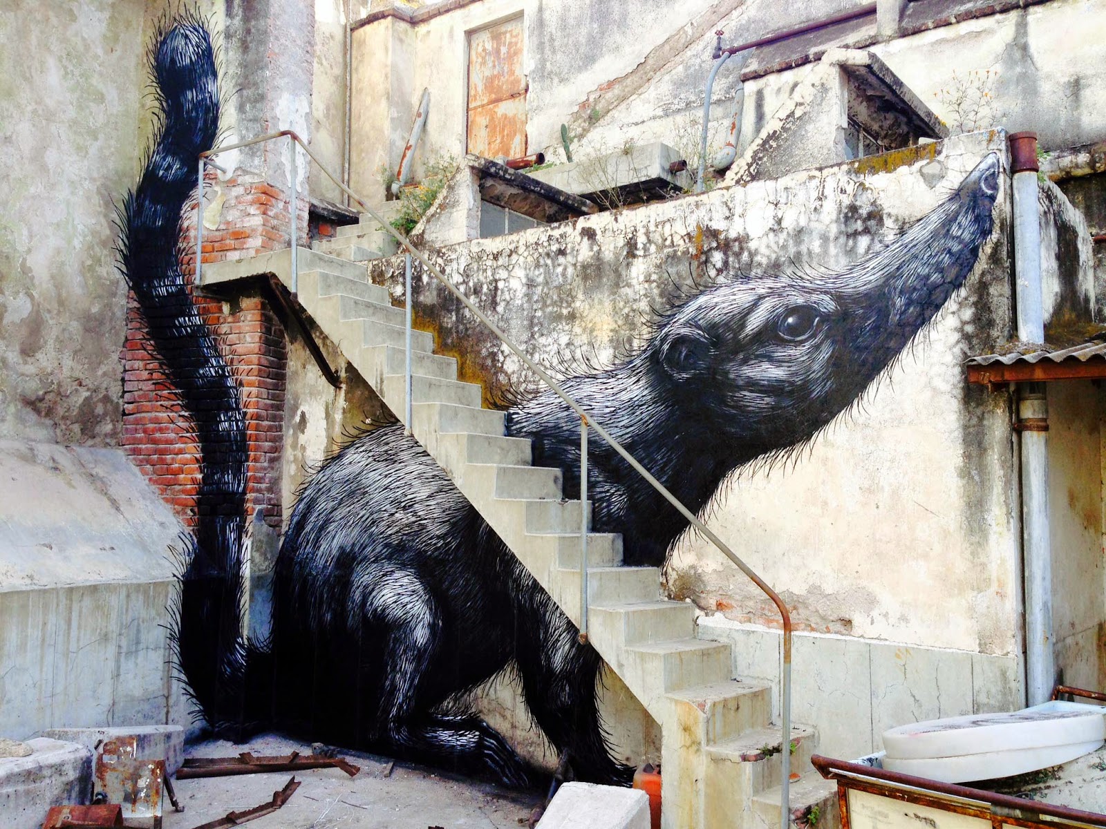 In town for Board Dripper and Balneario TV, the talented Belgian muralist painted several of his lovely monochrome creates for the locals to enjoy. Next stop for ROA is now Las Vegas for JustKids and Life Is Beautiful.