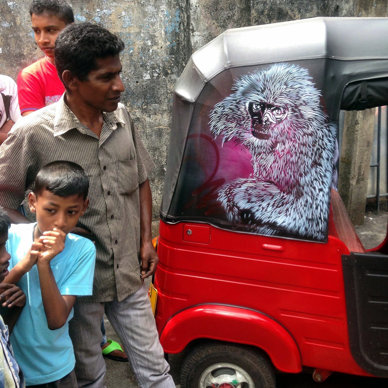 Parisian street artist C215 has been traveling again, this time to Sri Lanka, where he drew many curious audiences while he was painting some of his intricate stencils.
