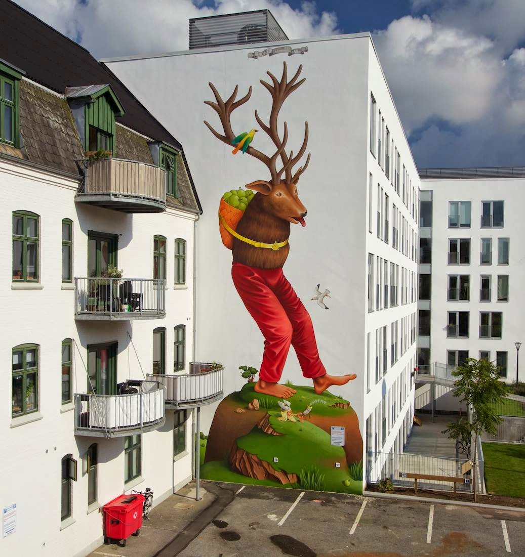 The Ukrainian muralist painted this beautiful piece which is featuring a reindeer-human hybrid which seem to be inspired by Scandinavian folklore.