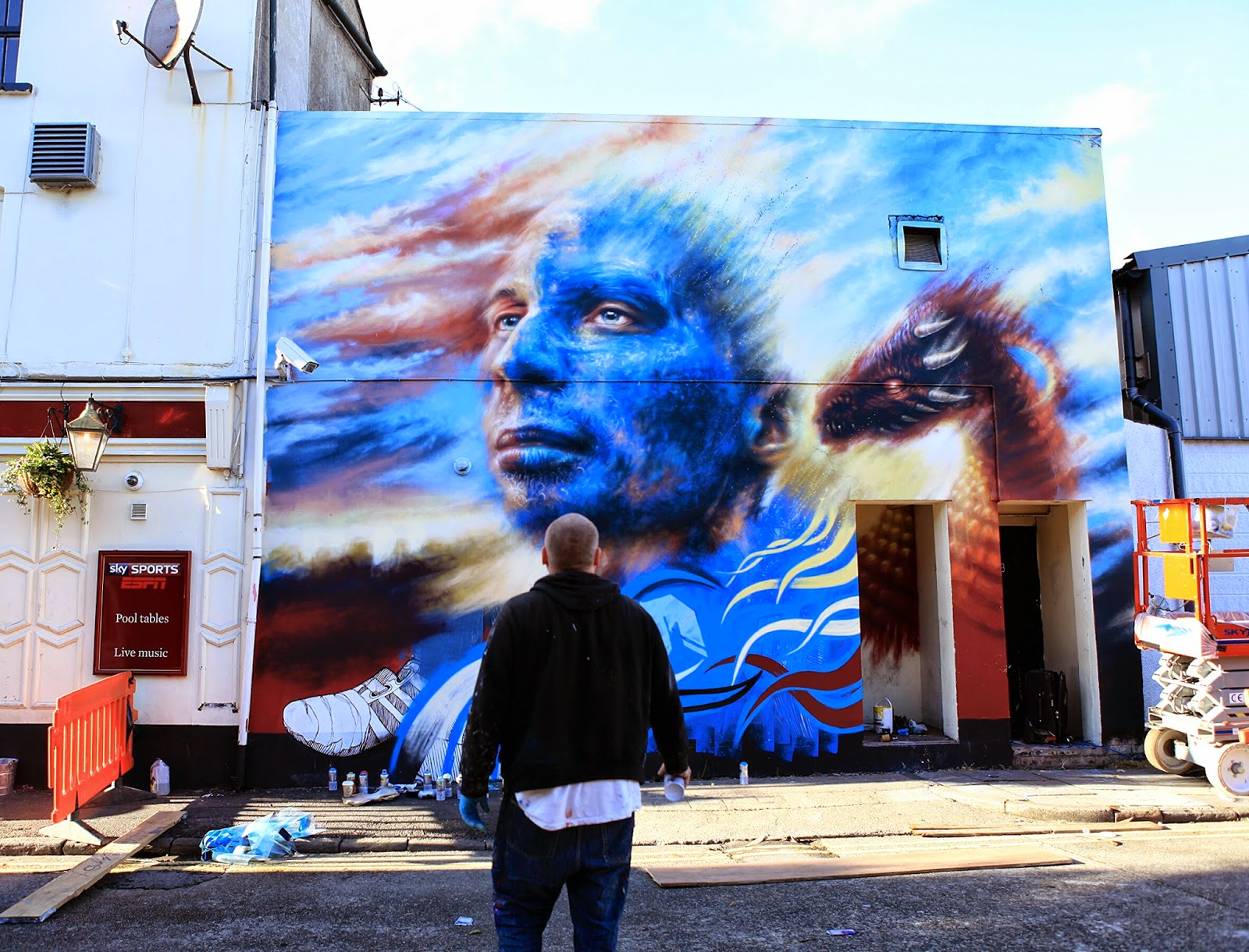 Along with several others artists, Dale Grimshaw spent a few days in Cardiff, Wales for the Empty Walls Street Art Festival.