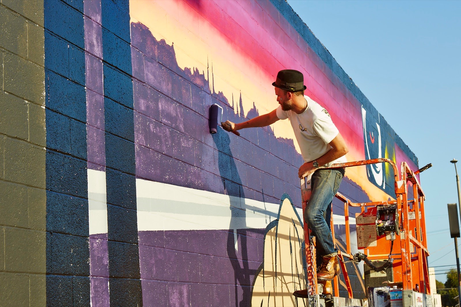 The famed British street artist and his team quickly painted this brilliant piece which is featuring some of his signature imagery.