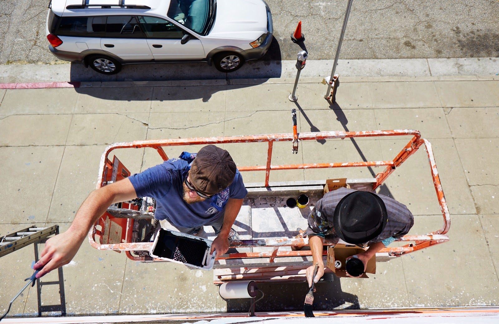 Passing through Los Angeles for the opening of his solo exhibition “Scars and Stripes”, DFace linked up with the good lads from Branded Arts to work on a new mural.