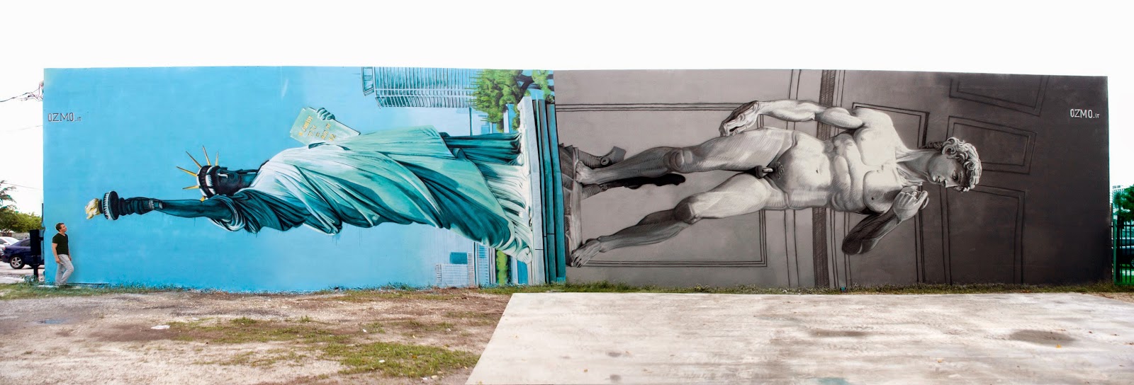 The Italian artist spent six days working on this 30 x 6 meters beast which is showing hyper-realistic images of the statue of Liberty and Michelangelo’s sculpture of David.