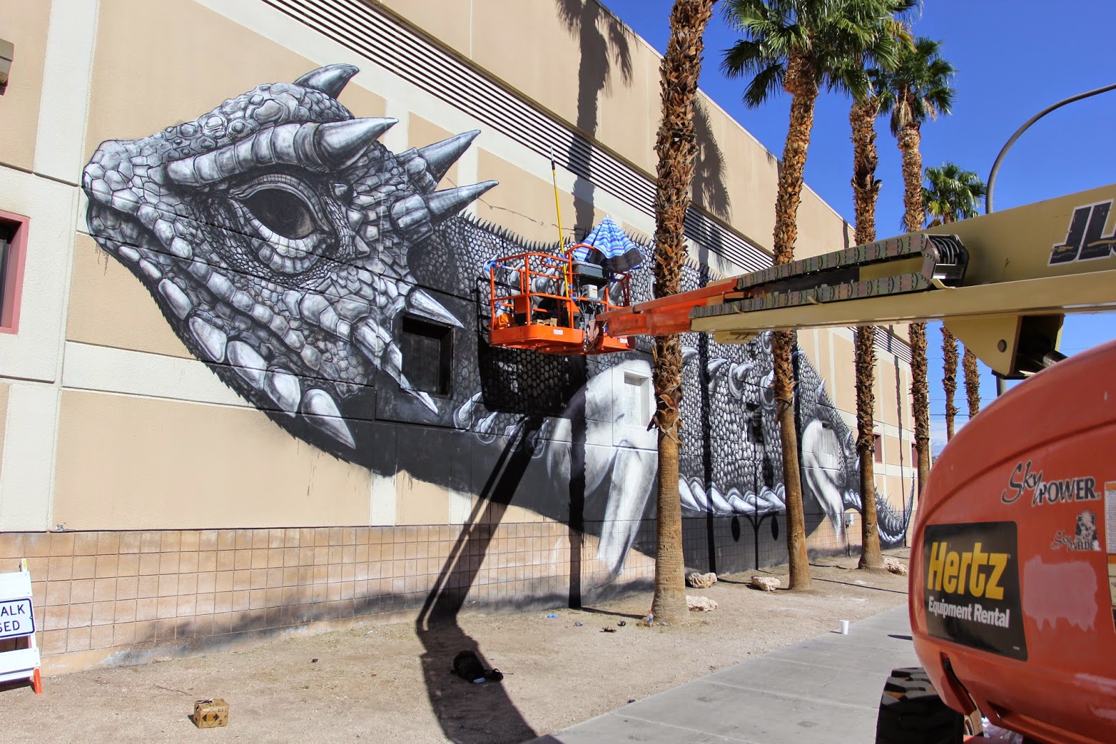 Late last night, our friend ROA wrapped up his newest mural on the streets of Downtown Las Vegas for the upcoming Life Is Beautiful 2014 Festival.