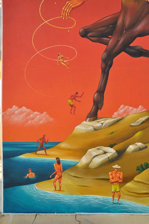 The Ukrainian artist is a big fan of myths, traditions, legends and times past, and was very inspired to paint on an island with such rich history. The result is this large mural titled “Reappearance of Ancient Civilization”, showing some of the mythological creatures alongside modern day people at the beach, making a connection between ancient legends and today’s reality of the island. The piece took about a week to finish, and is overlooking the beach front in Ayia Napa.