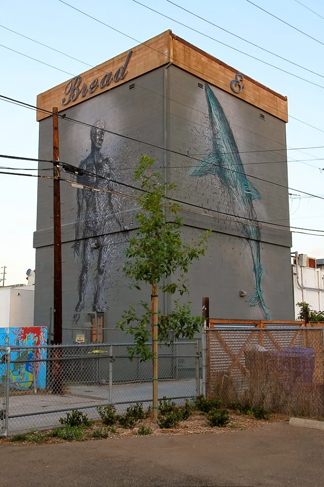 DalEast recently stopped in San Diego for Pangeaseed’s Sea Walls: Murals for Oceans project. Invited to create one of his signature murals for their worthy cause, Chinese artist created this piece in East Village district of San Diego, California.