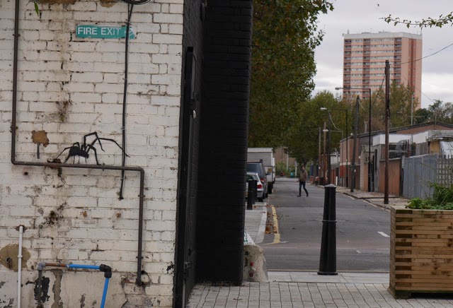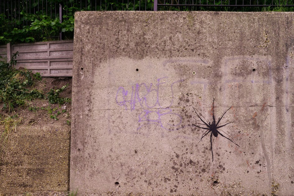 Outside of doing bigger works and since 2009, Paul Insect has been spreading his brilliant spiders all around the city of London. Done without permission, many pieces have unfortunately already been buffed.