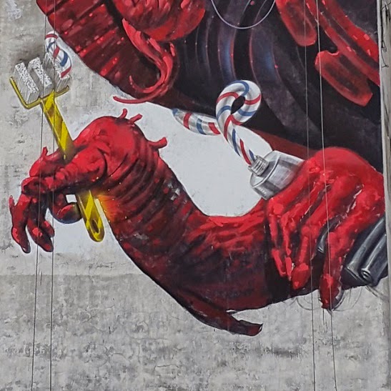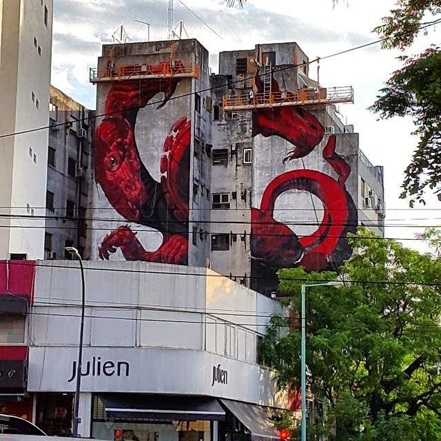 The South American duo spent five days working on this impressive artwork which is showing a red Hydra holding a toothbrush. In Greek mythology, the Lernaean Hydra was an ancient serpent-like water monster with reptilian traits. It possessed many heads – the poets mention more heads than the vase-painters could paint – and for each head cut off it grew two more.