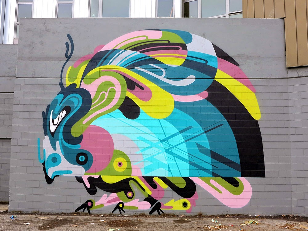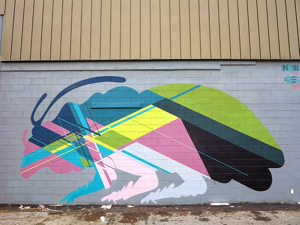 The concept of this awesome collaboration was 3 insects designed by REKA with Nawer’s work inside his design. The right is completely Nawer’s work moving across to the left which is primarily REKA’s work. A truly nice Australian-Polish blend.