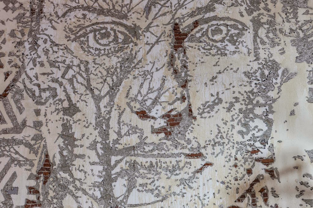In town with the good lads from Lebasse Projects, the Portuguese street artist quickly worked his way through two of his signature portraits. Beautiful as usual.