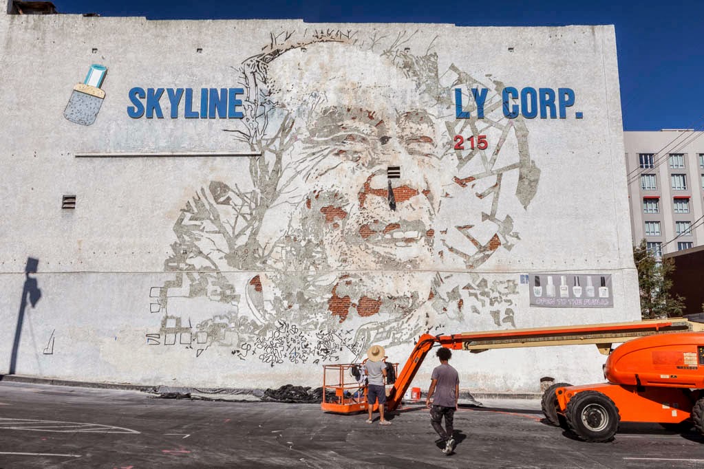 Our friend Alexandre Farto aka Vhils recently made a quick stop by California where he spent a few days working on two new pieces somewhere on the streets of Los Angeles.