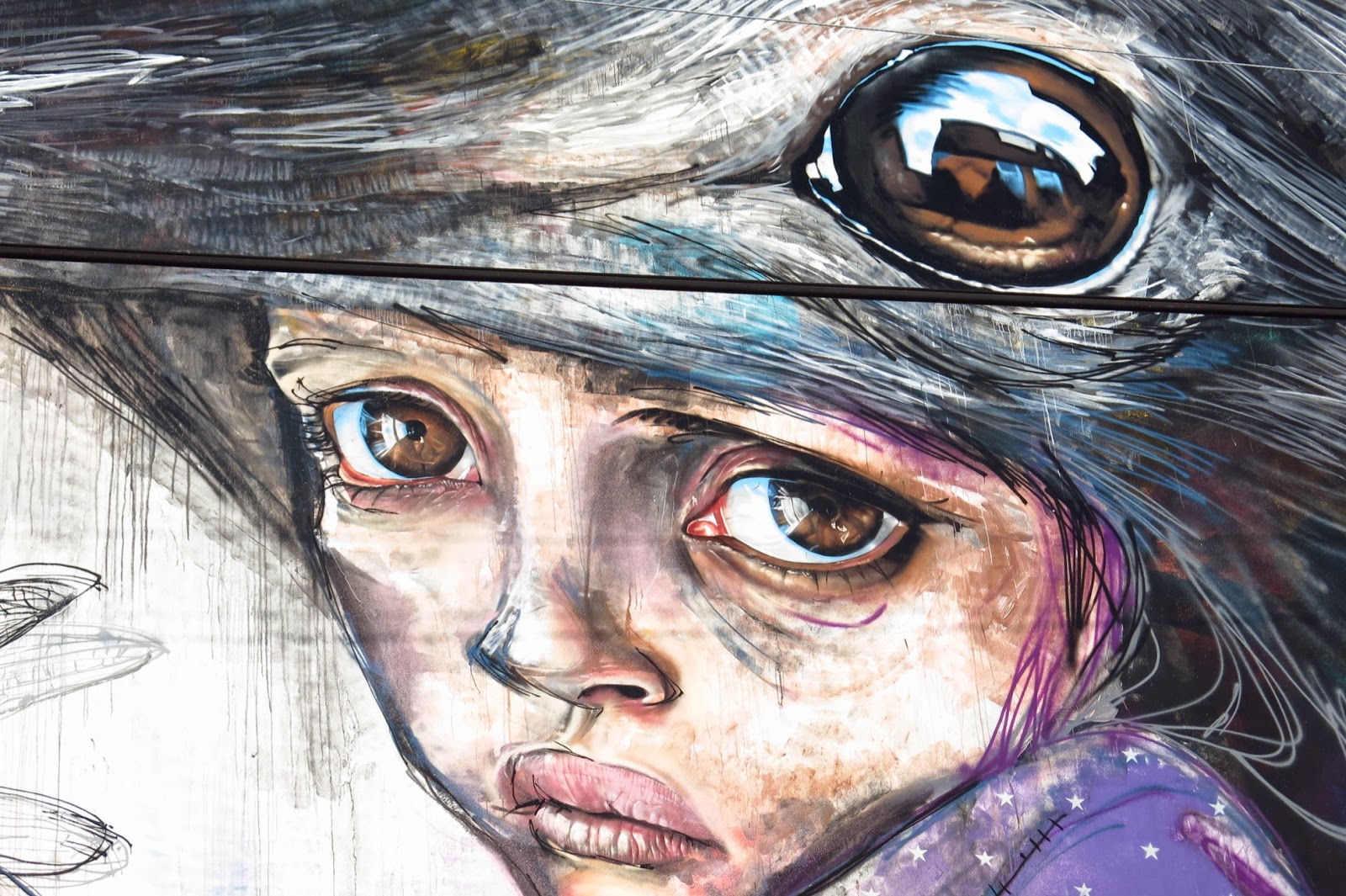 Entitled “I Dreamt I Was a Human. It Was a… Nightmare”, the German street art duo once again dropped an impressive artwork. Albeit dark in nature, the imagery found in Herakut’s works is striking, conveying a myriad of emotions through the main focus of their works: the eyes. It is this emphasis on a darker color palette that serves as a background to their murals while adding a vibrant energy to these specific elements chosen to be emphasized in their creations.