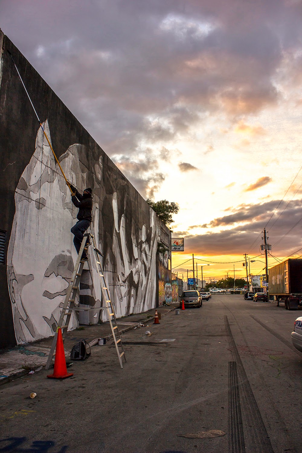 Athens based mural artist INO painted the wall of the known old RC Cola Plant in occasion of the Miami Art Basel 2014. The artist was invited by Wynwood Embassy to do the mural which features a Socrates statue lying down along with a skull.