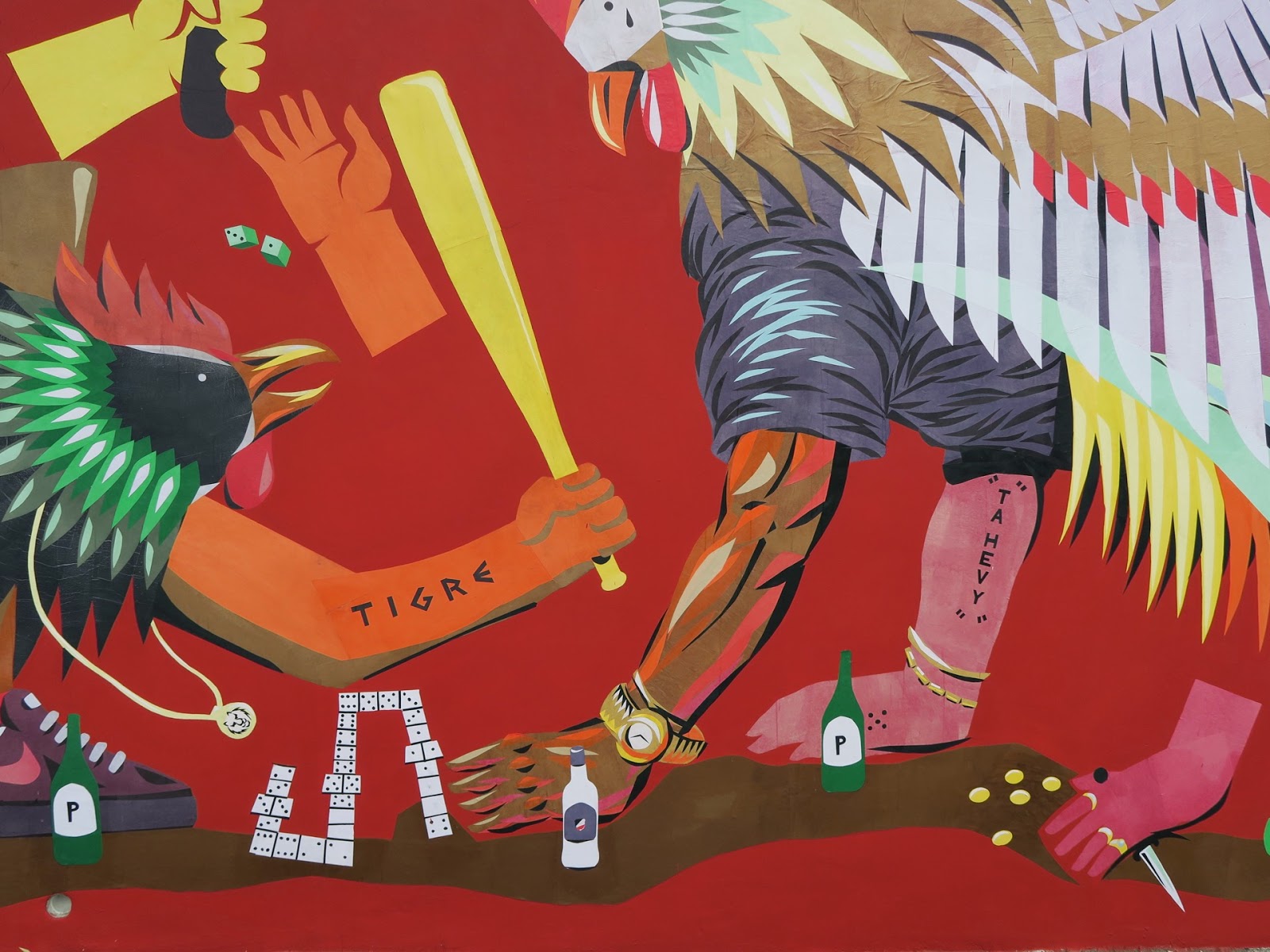 The prolific Argentinean muralist spent a few days working on this vibrant mural which was made using the paper collage technique. This piece represents the traditional street games that are found locally such as dominos or Baseball.