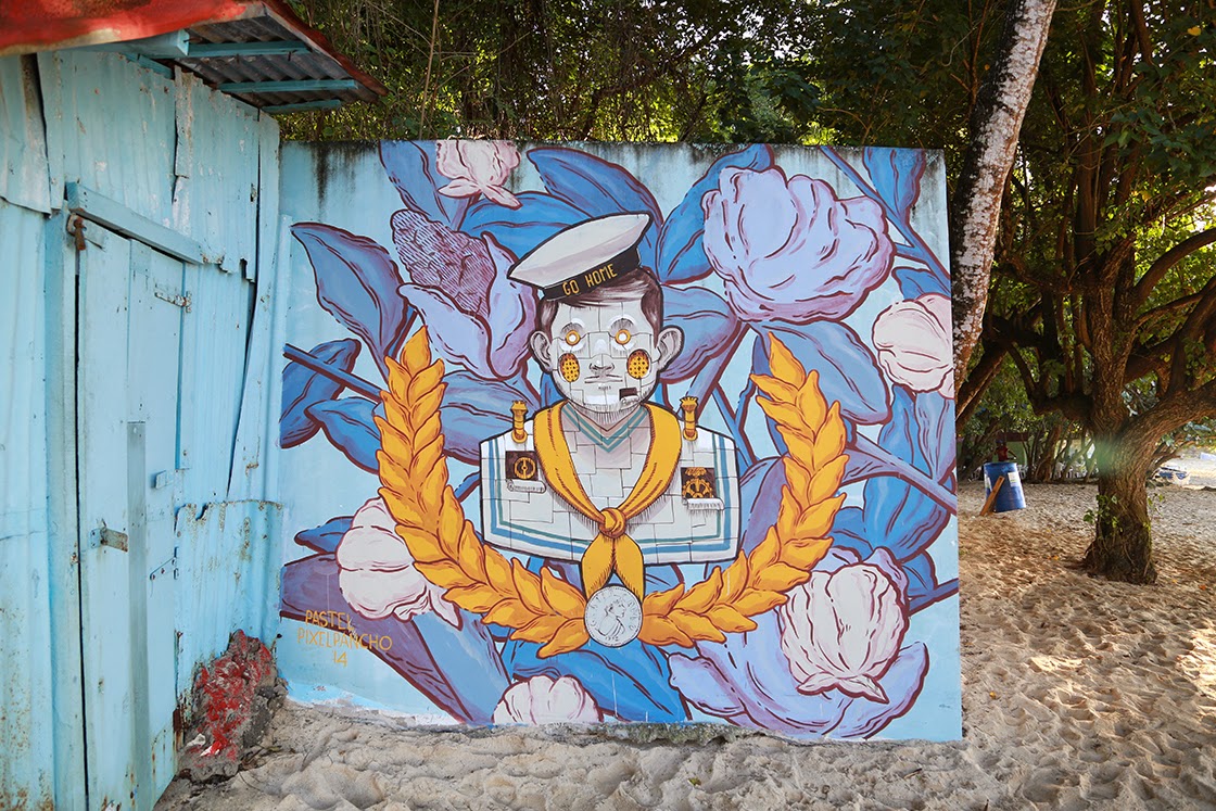 Painting on the beach of Rio San Juan, the Italian-Argentinean duo quickly worked on this piece which is featuring each artist’s distinctive style. The mural is entitled “Go Home.