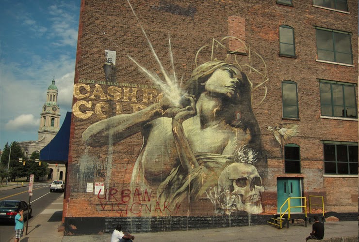 Following an art career spanning more than fifteen years, Faith47’s murals can now be found in major cities around the world. Using a wide range of media, and balancing her production between outdoor and indoor artworks, her work is both an internal and spiritual release that speaks to the complexities of the human condition, its deviant histories and existential search.