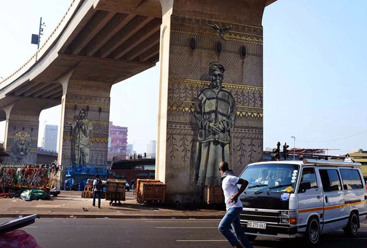 I was awarded with a public art commission by the city of Durban and I was strongly motivated for these bridges because of the hightened energy in this location, which i feel is not appreciated to its full extent. The portraits are of individual traders themselves. With the intention of bringing them a sense of ownership to the contested area. The questions that arose through this project for me were about the effects of architecture, and the way that people create a city, despite city planners who often are disconnected to the real needs and movements of the man on the street.