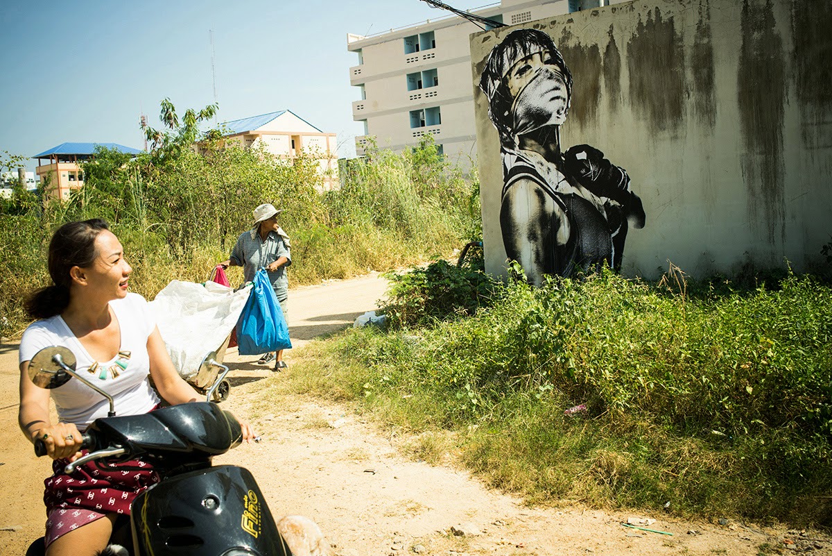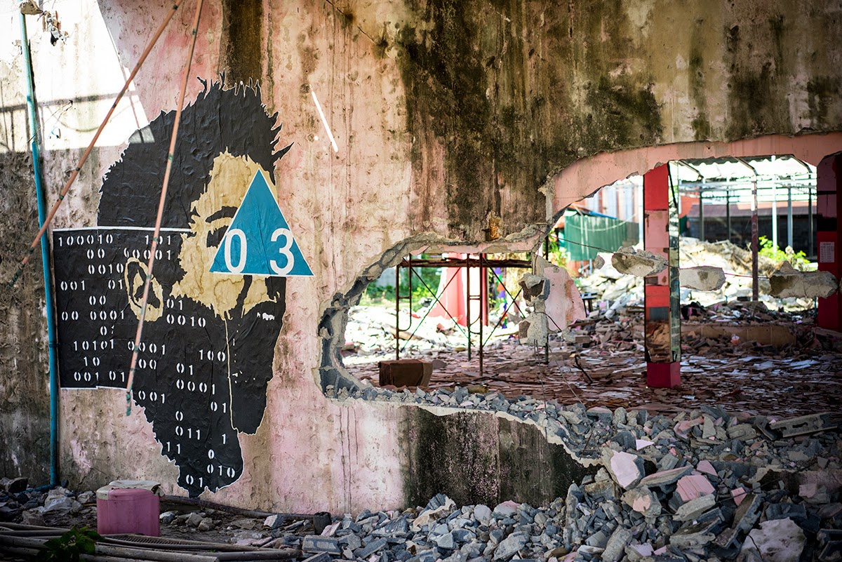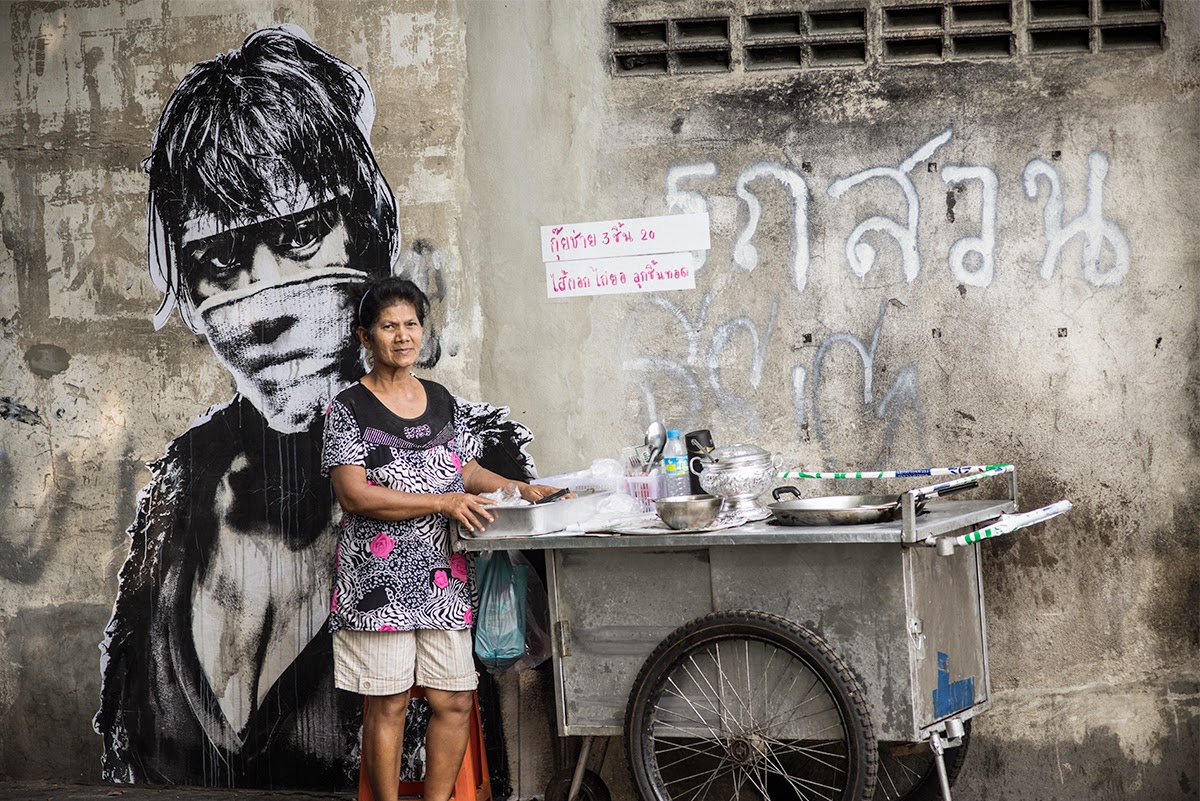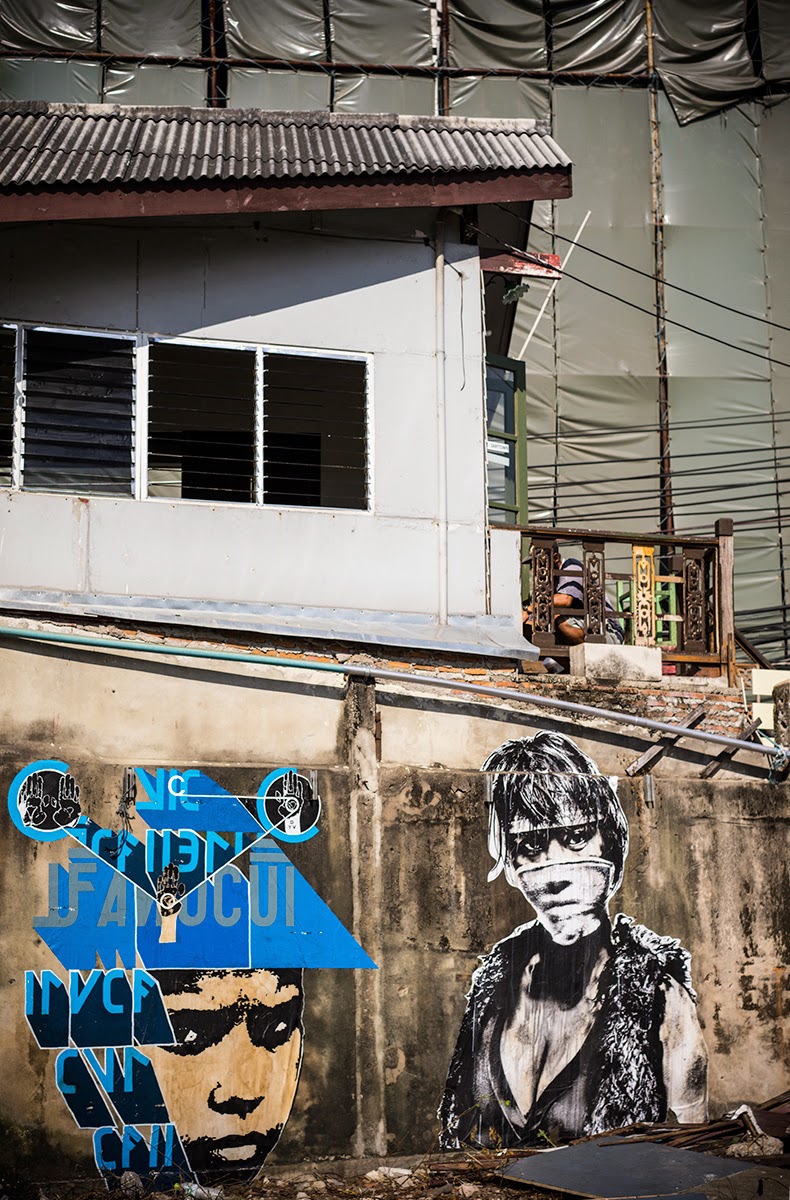 What unfolded was a series of large format wheat-pastes across Bangkok, Pattaya and Koh Samet. Beyond the Grand Palace, the Buddhist Temples and notorious red-light districts of Bangkok is a kinetic and derelict landscape that provided a fitting canvas for their apocalyptic themes.