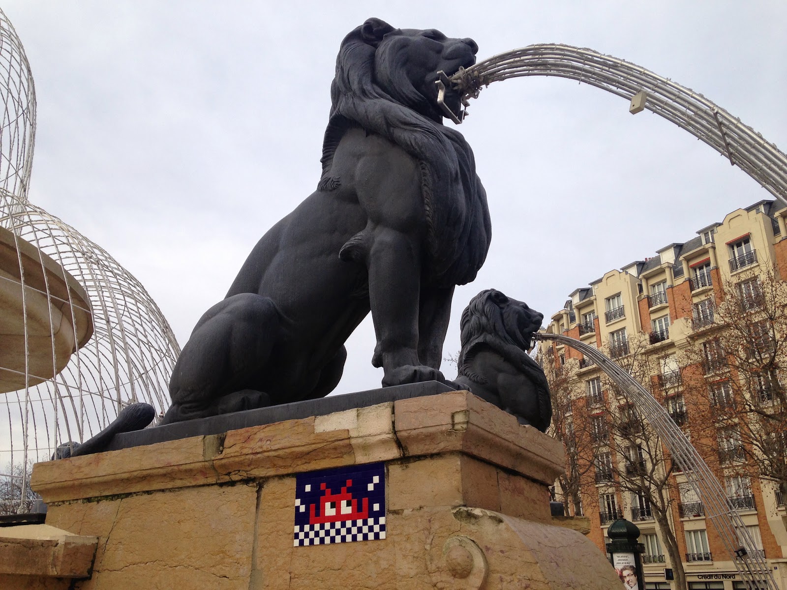 The French artist invaded the famous Daumesnil Fountaine on Place Felix Eboue in the 12th district of Paris. This new mosaic piece is his 1131th Parisian invasion although many have been destroyed or stolen.