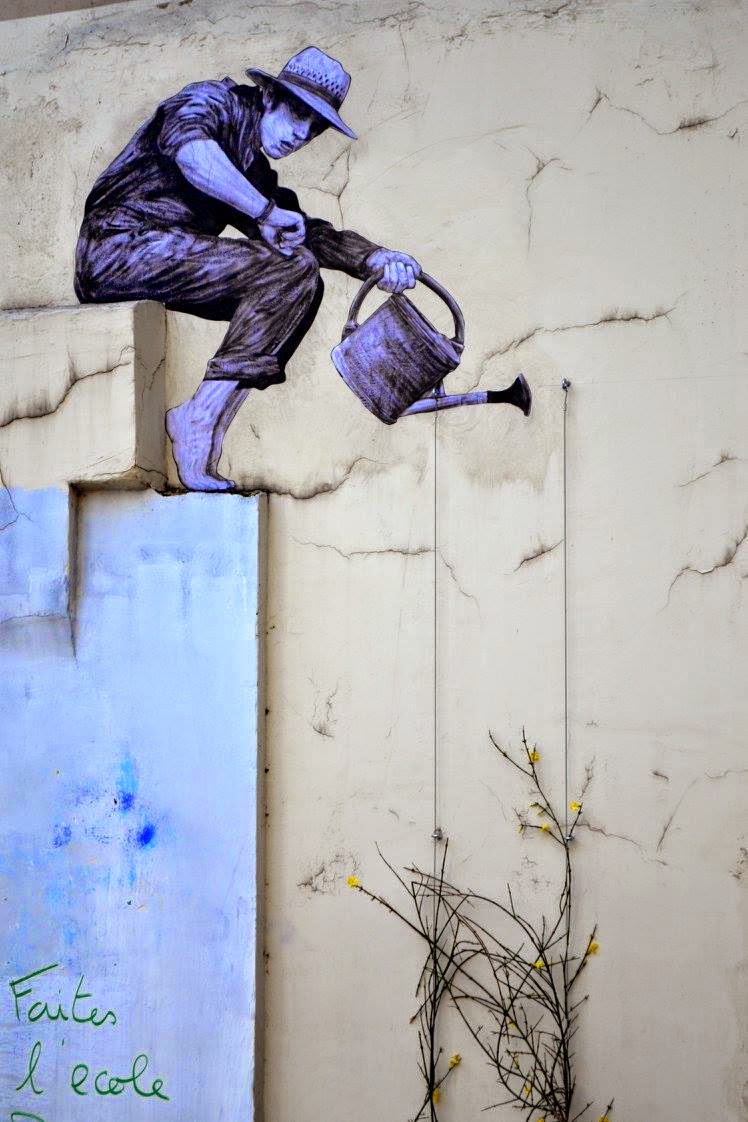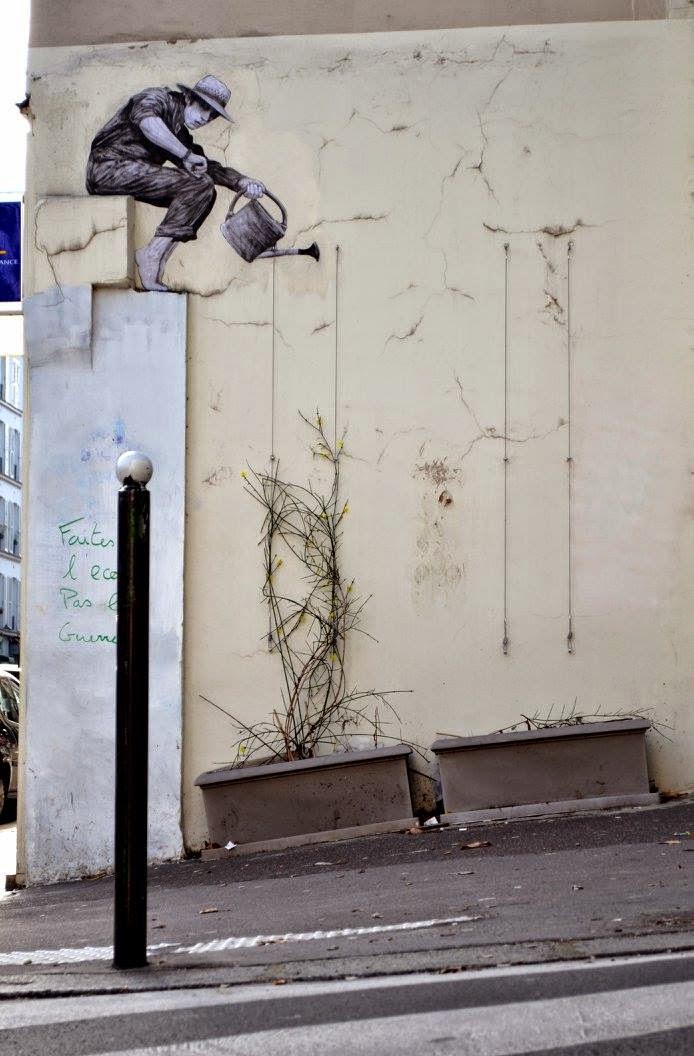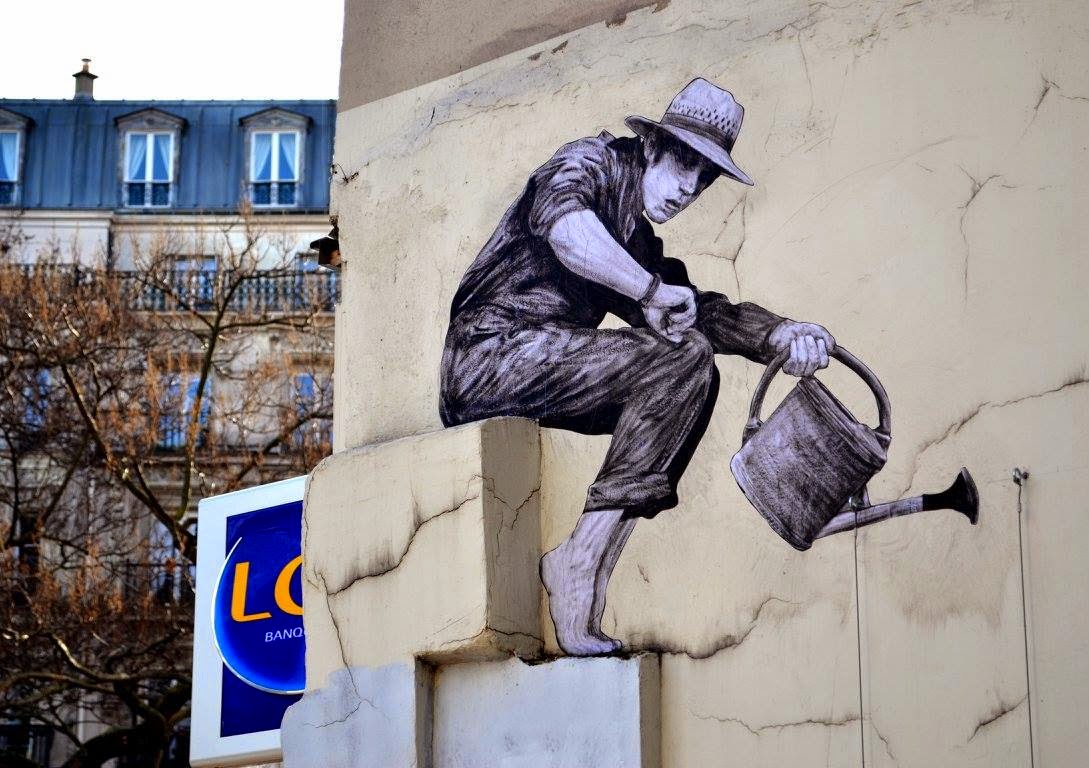 The up and coming Parisian-based street artist creates life-sized pasters of people that seem to be interacting with the surrounding neighbourhood, some playful and others more mischievous.