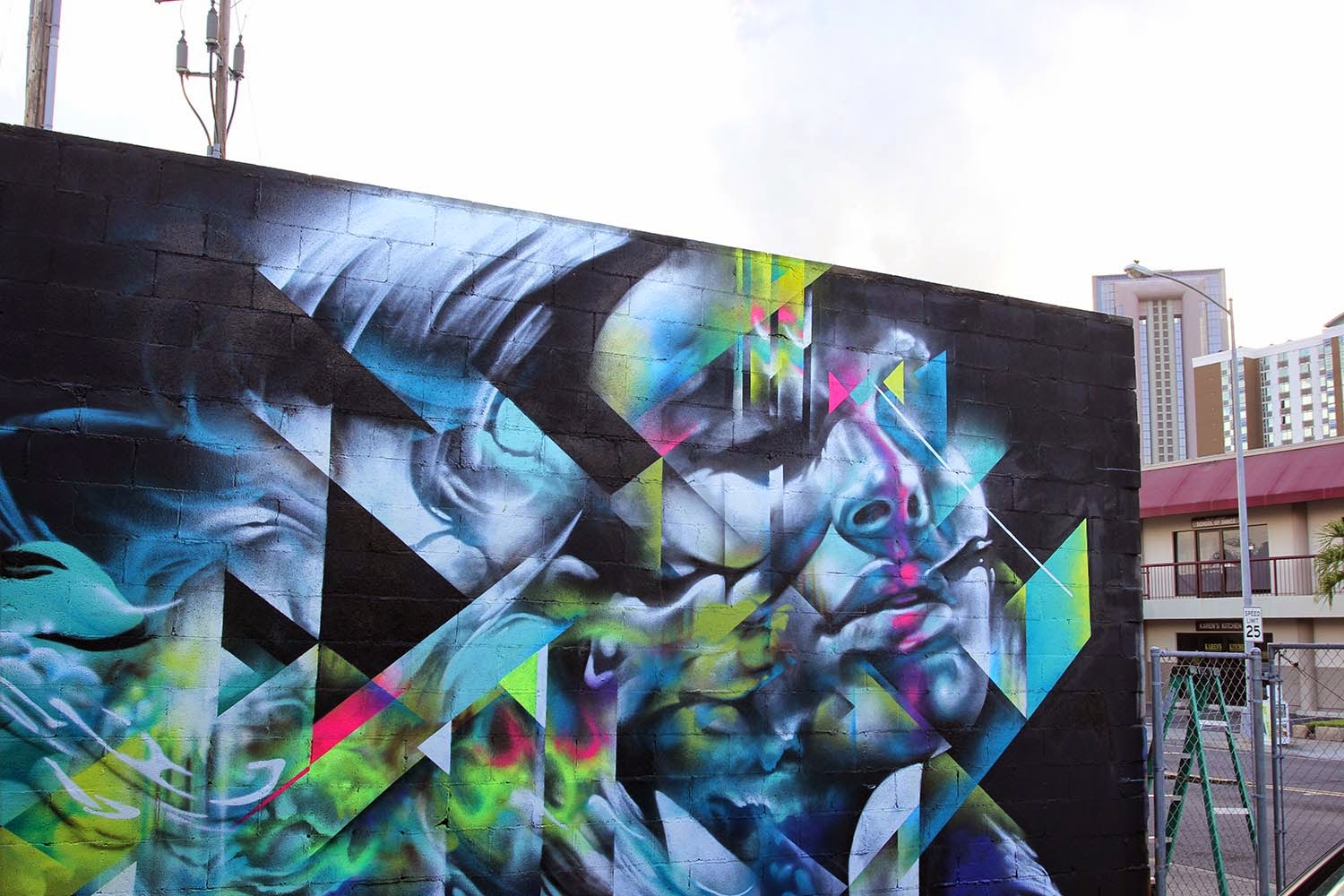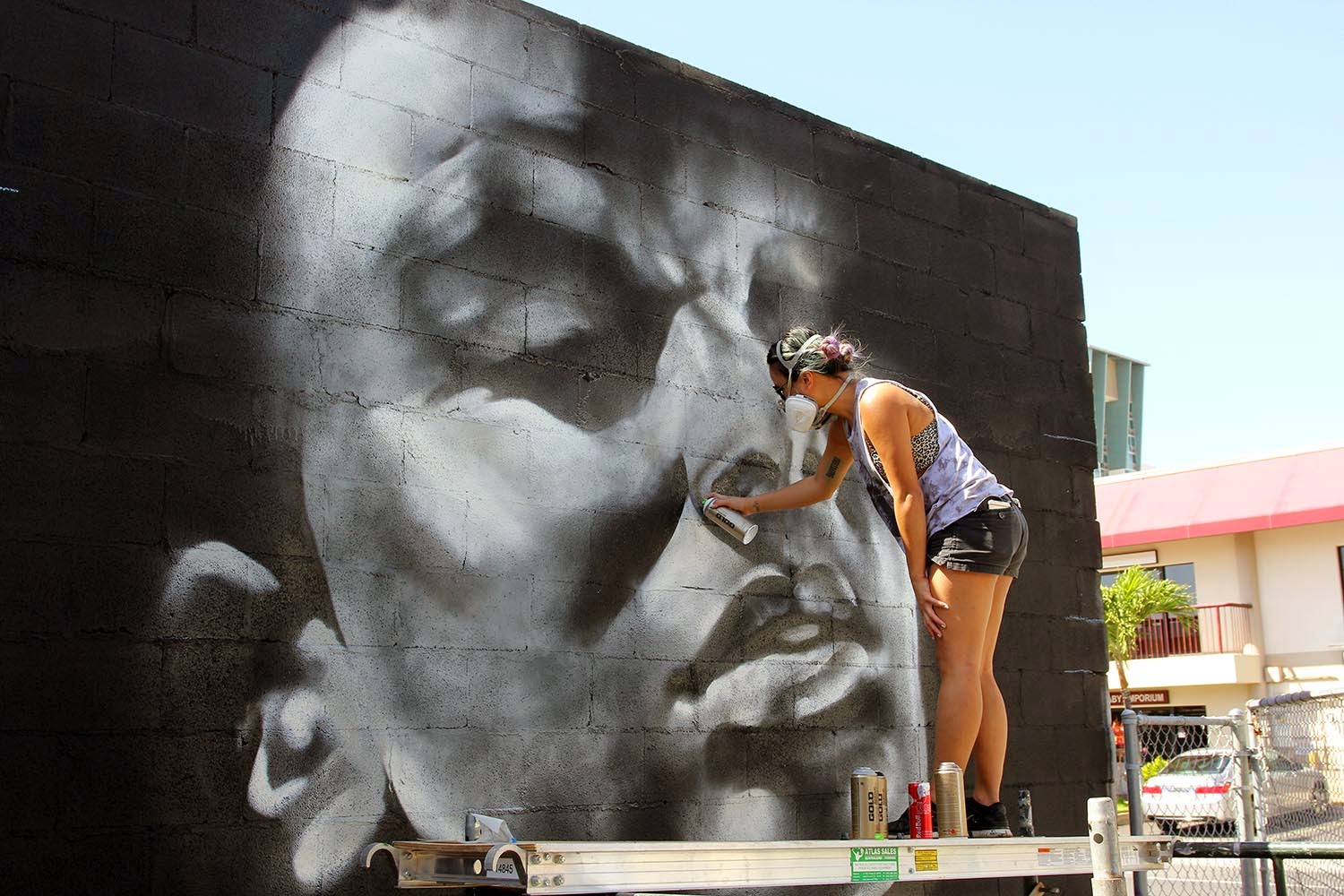 Part of the 1XRUN curated murals for Pow! Wow! Hawaii 2015, Hueman just added the finishing touches to her artworks on the streets of Honolulu.
