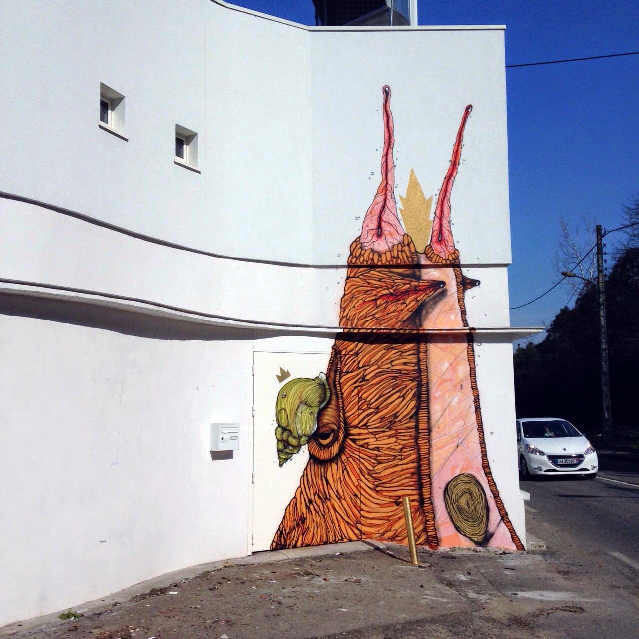 After a few days of work, our friend 100TAUR just wrapped up two brand new artworks with Mahi Mahi and Buccinidae on the streets of his hometown, Toulouse in France.