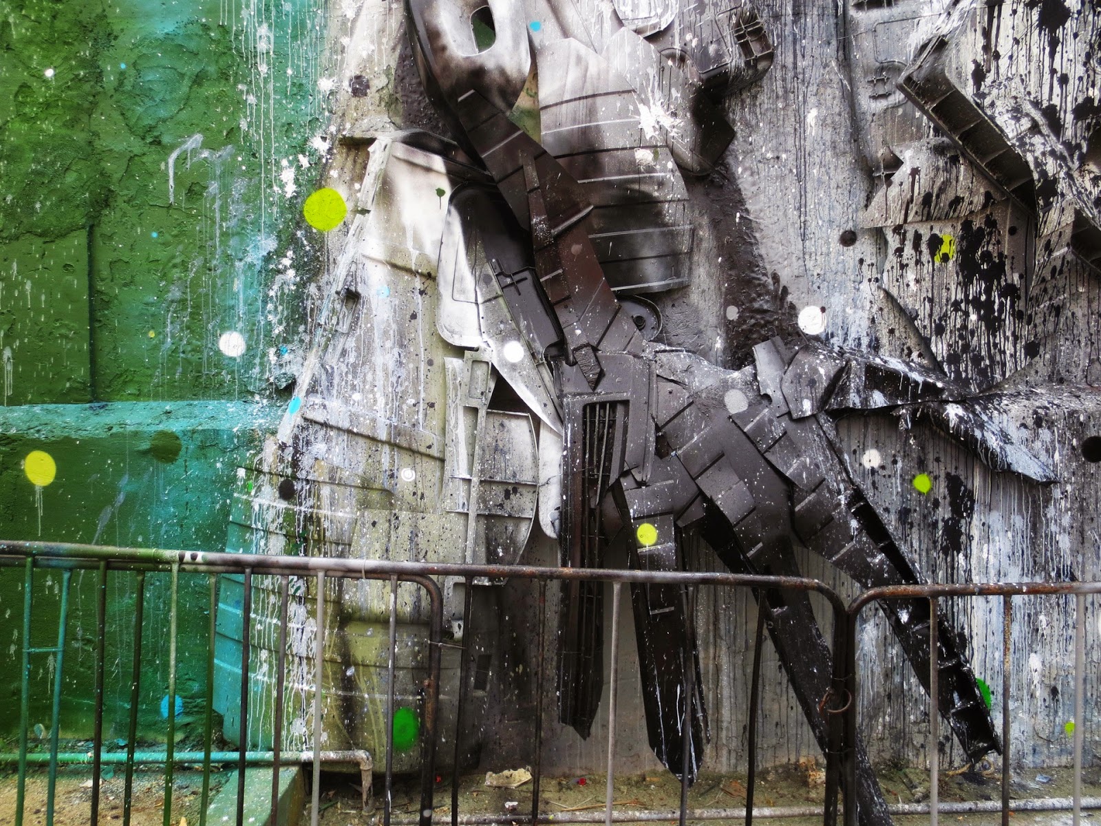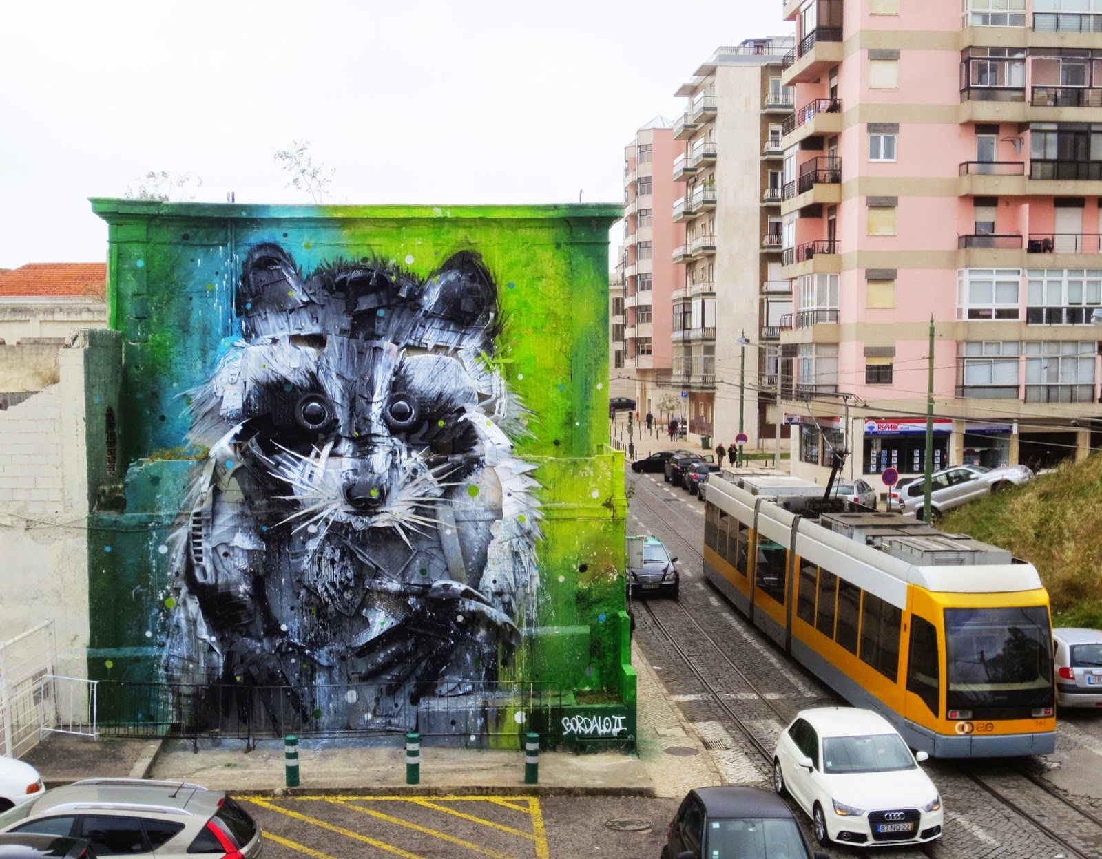 Part of his current solo exhibition “Pânico, Drama, Terror” at Arte Periférica, the Portuguese artist spent a few days to build this mind-boggling installation which is comprised of various trash, metal and found materials. Entitled “Big Raccoon”, this is probably our favorite piece from Bordalo II to date.