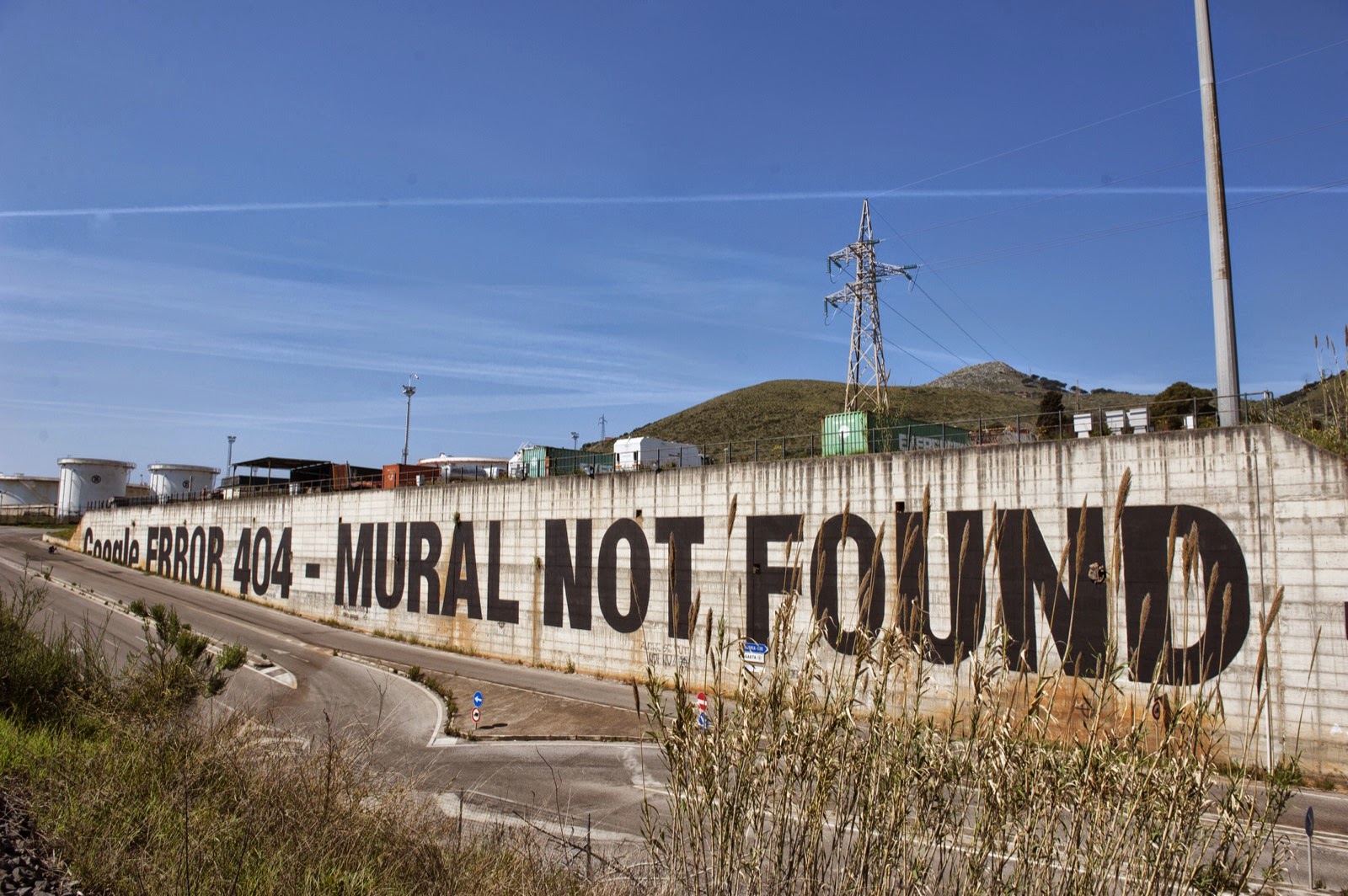 The elusive French artist spent a few days working on a giant 125 m wide piece which mimics the effects of Google and a 404 error.