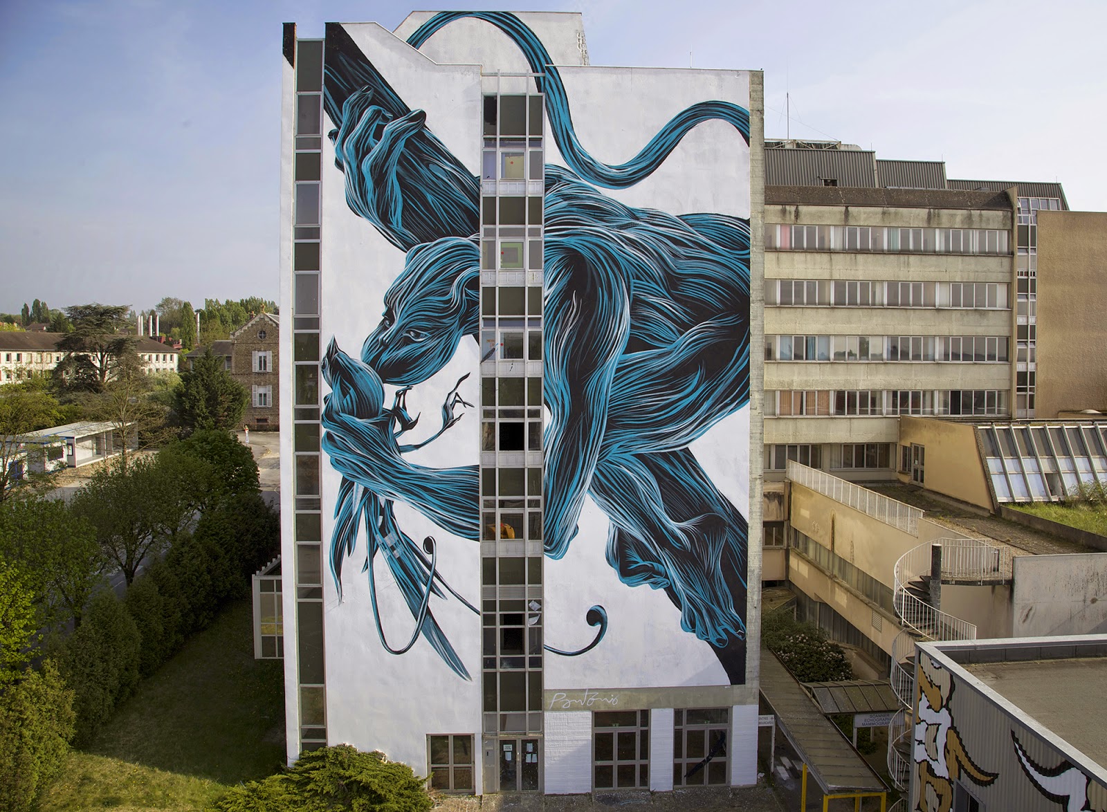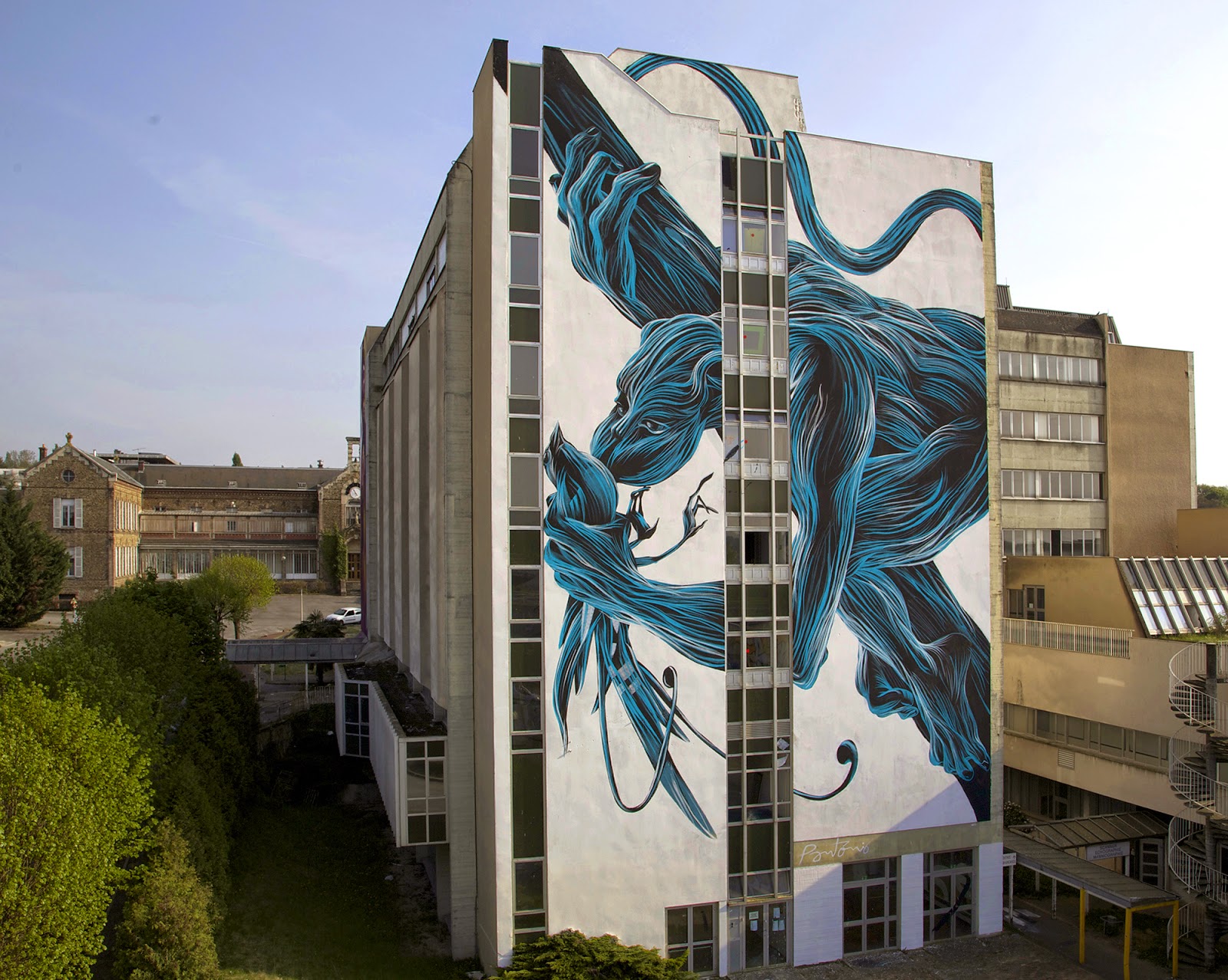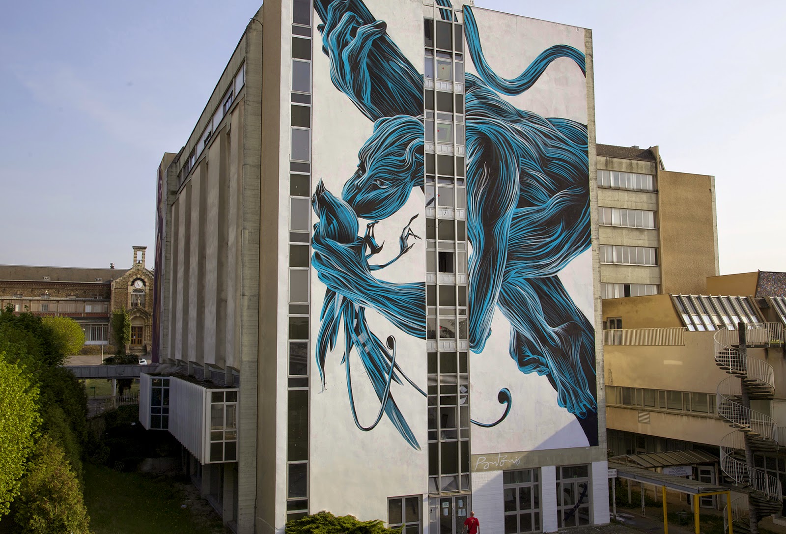 Portuguese artist Pantonio is currently in France where he spent the last few days working on this massive artwork somewhere on the streets of Lagny Sur Marne.