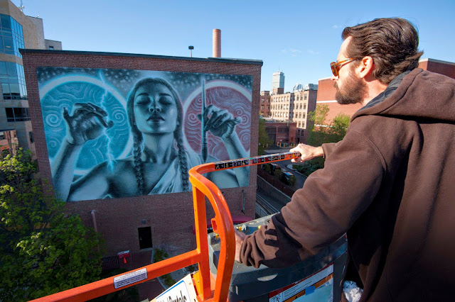 Los-Angeles based artist El Mac spent some time in Massachusetts where he worked on this monster wall in Boston.