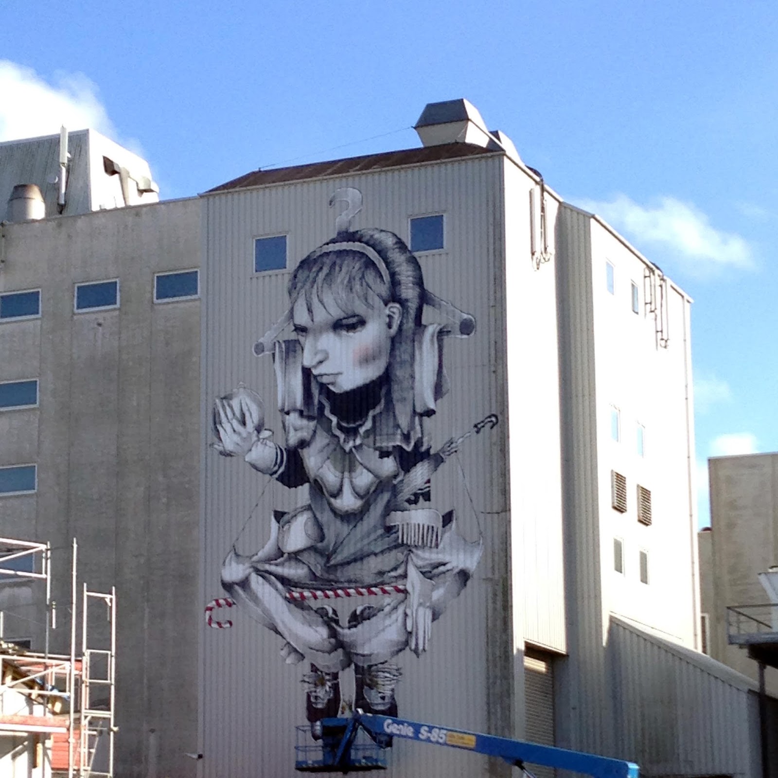 While he’s been rather quiet in the last few months, Ethos recently spent some time in Norway where he was invited to paint a large piece on the streets of Bryne.
