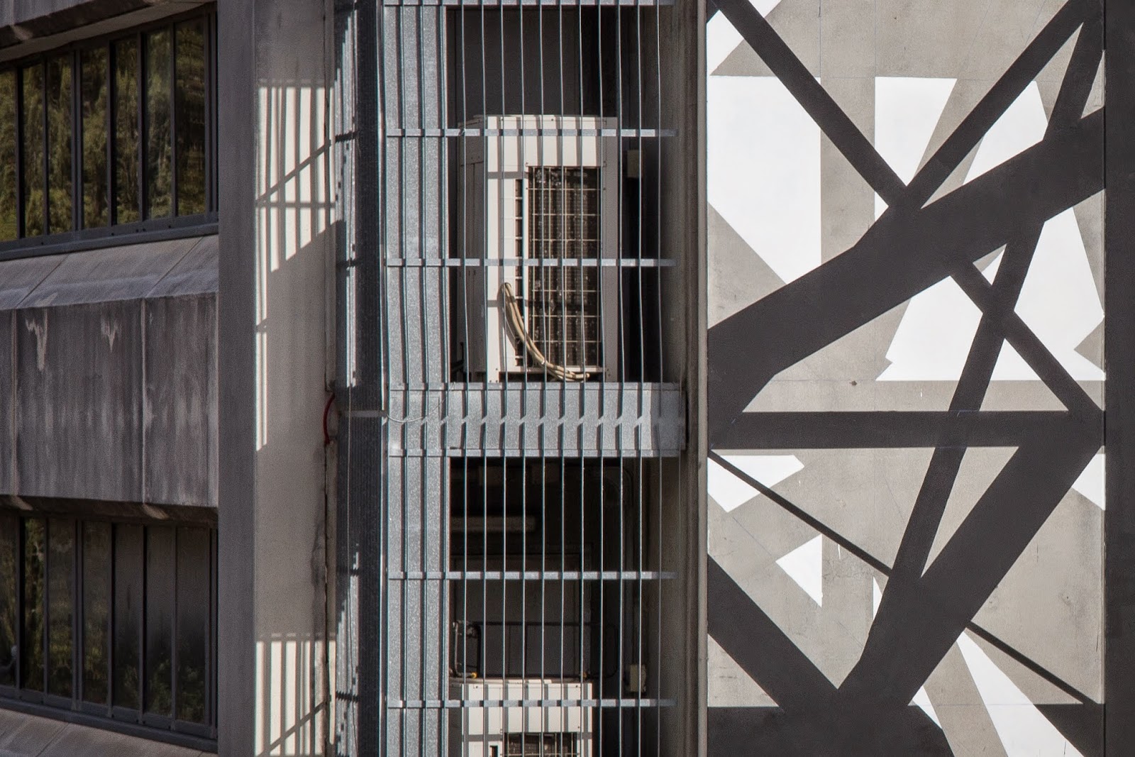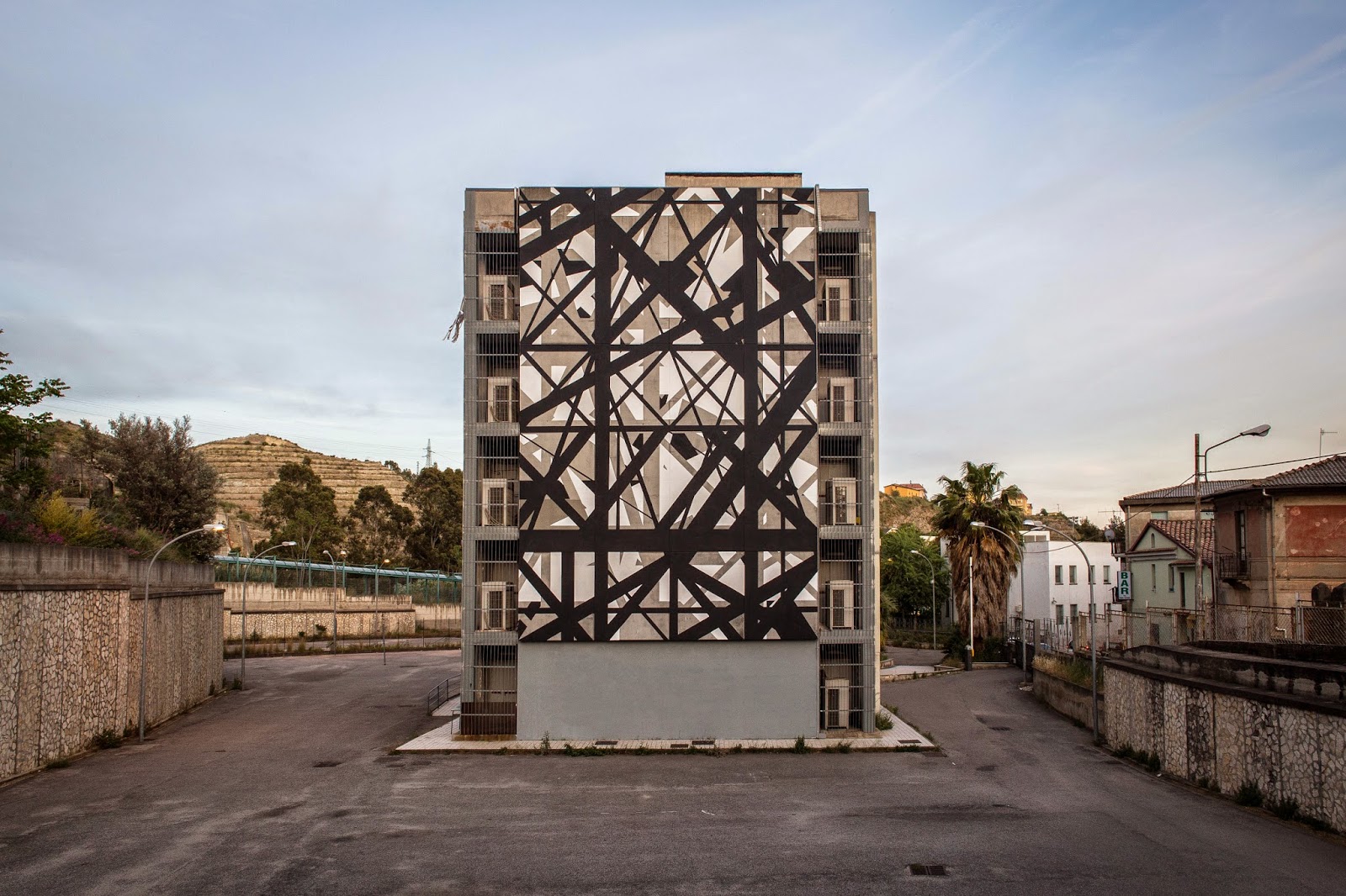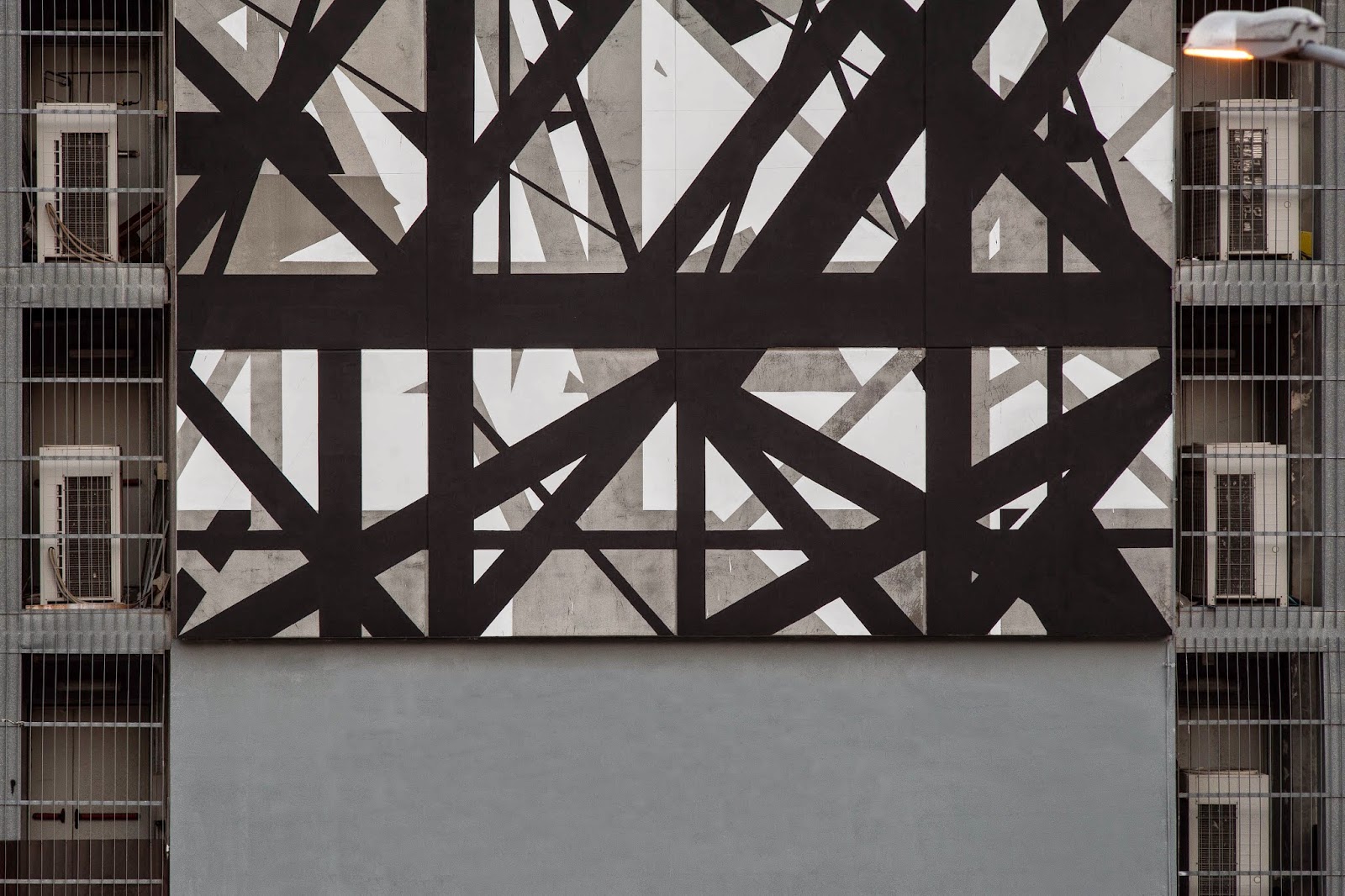 Minimal and complex, Graphic Surgery’s work definitely breaks the line between art and architecture. Working with the grid of the building, the Dutch artists have created a layered mural, precise positive and negative spaces that enhance and maintain the existing structure recognizable. Made on the wall of a Technical Institute, “Increment” stands as a stimulus and source of inspiration for students of graphic inside.