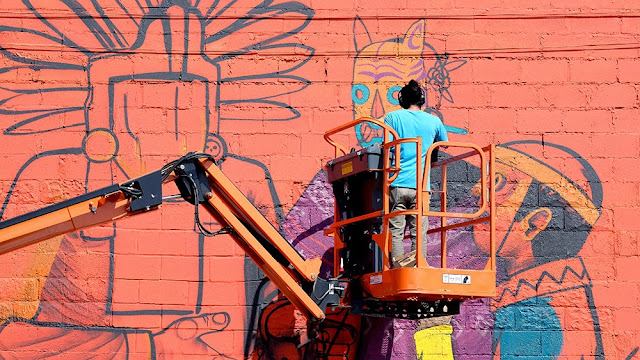 Saner recently took part in the 1xRun residency project, creating some new work during his stay in Detroit. Along with gallery works for their Cinco De Mayo exhibition, Mexico City-based artist painted a new large mural in southwest part of the city.