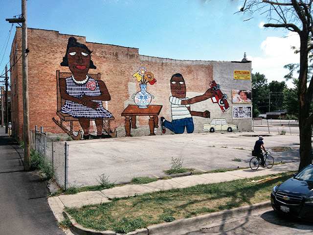 For me, when I am placing a character in the street my general rule of thumb is that the character either fits within the space or is completely absurd within that space. They are people inhabiting a space the same as any other Chicagoan, and I like that after I place a character in the street they live their own life. They inhabit a space and then they depart, whether that happens because of the buff or naturally over time.