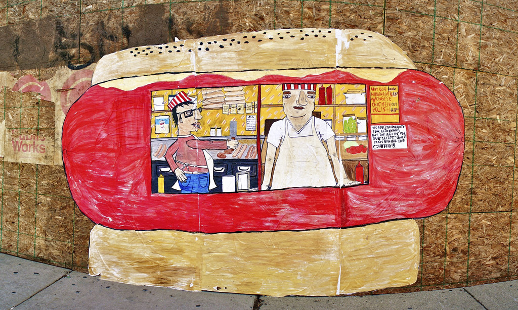 @jreich: You do a lot of work on the streets with wheat paste. Tell us about why that medium works so well with what you do, and was it shaped at all by Chicago’s notorious ban on spray paint?