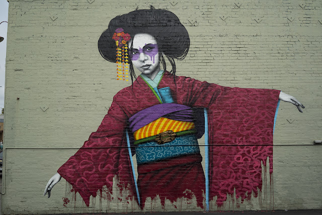 The Irish artist brought to life this beautiful depiction of an asian lady entitled “Hiko” (Japanese for Flight). It was painted ahead of his show opening at C.A.V.E. Gallery just a few doors away. The show “The Nadeshiko” runs until July 5th.