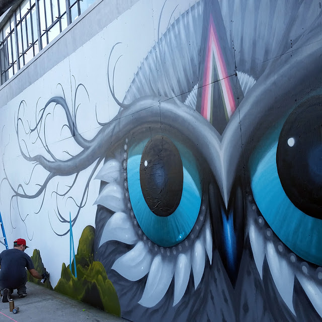 It took just a few hours for the American artist to bring to life one of his unique big-eyed owls which was created using his signature painterly technique. This rad artwork will sure be enjoyed by the local residents.