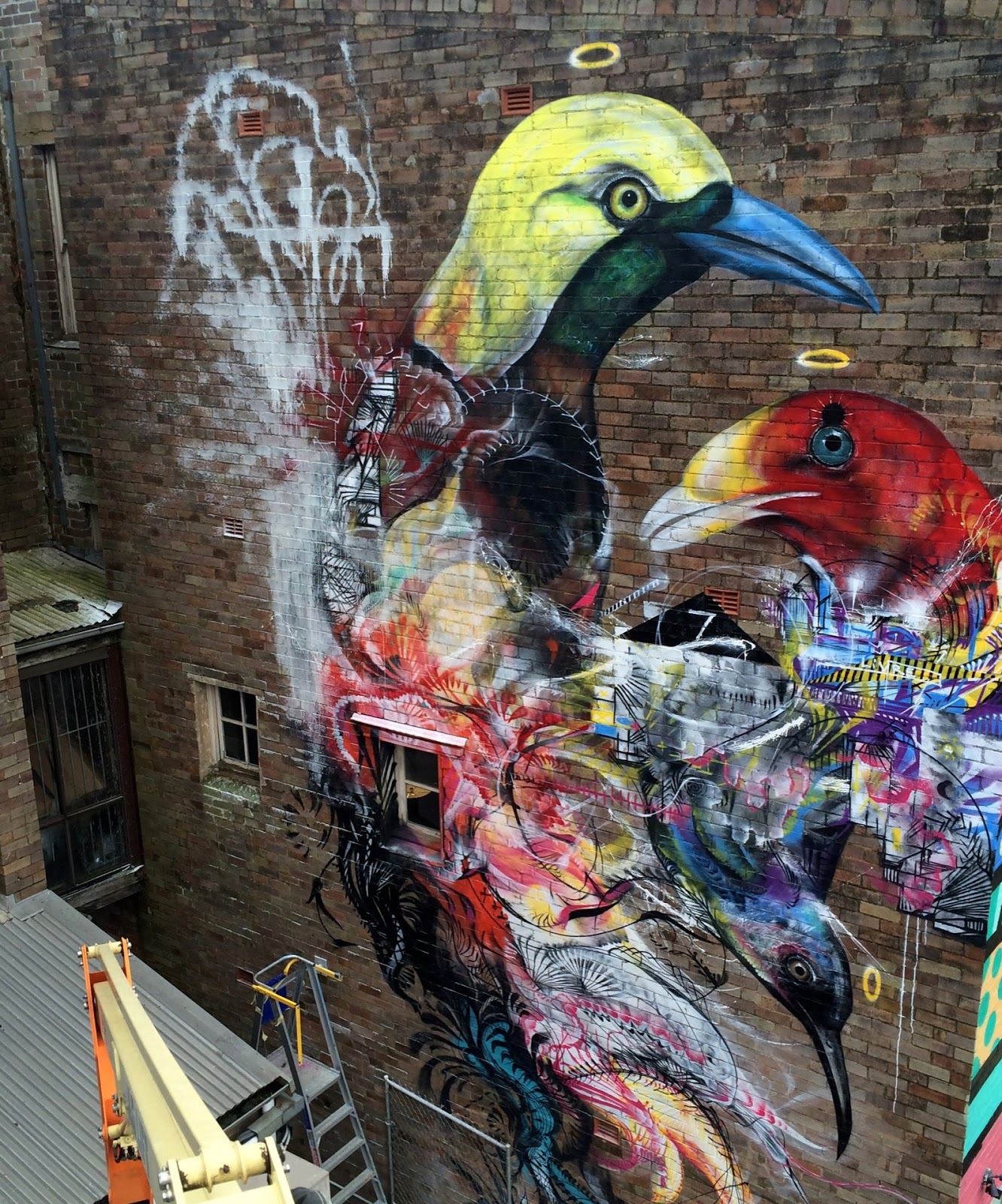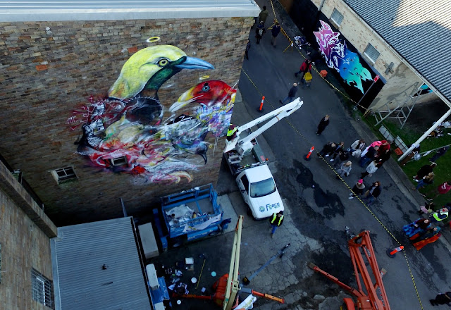 As usual with the Sao-Paulo based artist, he created some of his signature and hype vibrant birds combined with colorful abstract patterns.
