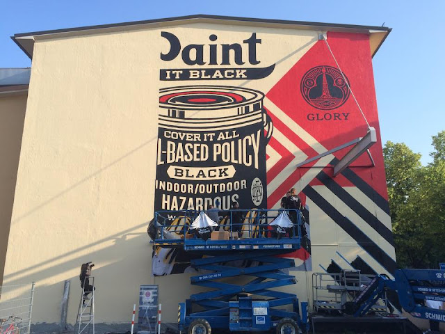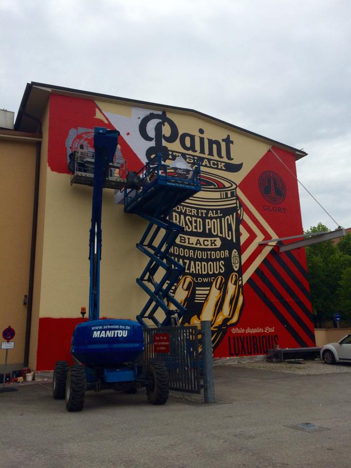 Shepard Fairey has landed in Europe and his first stop in Munich, Germany where he just finished working on this new piece.