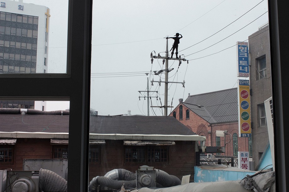 Currently touring around East Asia, Spanish artist Pejac recently stopped in Seoul and left couple of recognizable pieces. Working in an environment that is not common on the street art maps, the artist used this opportunity well to create couple of striking signature illusions.