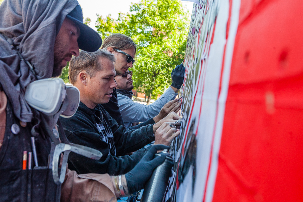 After two days of work in the German capital, the American street artist and his crew unveiled a large scale version of the iconic “Israel / Palestine” image which was released a few years ago as a screen-print. A subtle message on the ongoing conflict between Israel and Palestine.