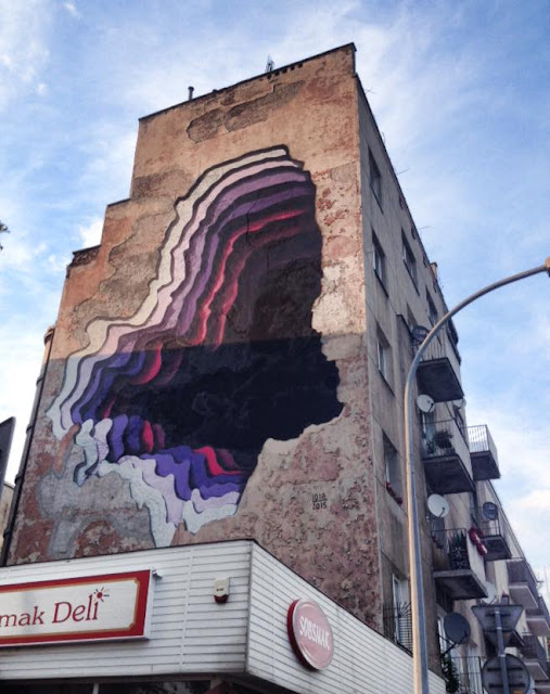After a few days of work, the prolific muralist created yet another super impressive colored three dimensional optical illusion.
