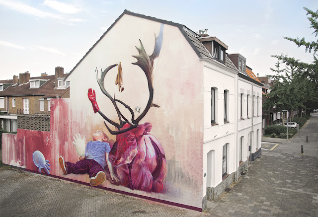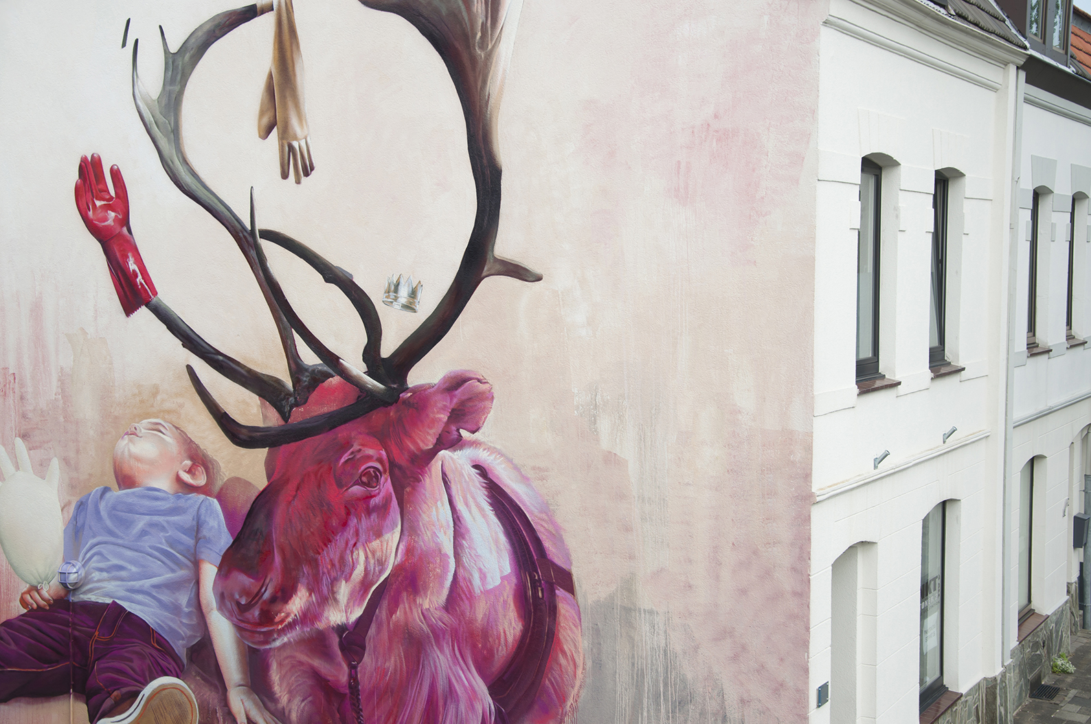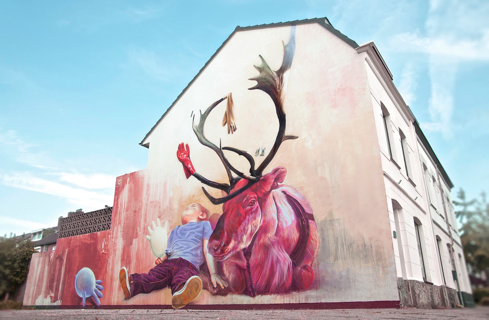 Entitled “A Crazy Little Thing Called Glove”, the street art duo brought to life another surrealistic piece which is featuring some of their hyper-realistic imagery.