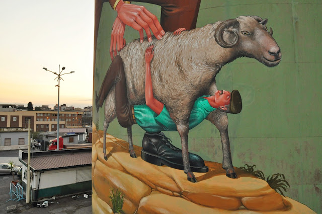 AEC from the Ukrainian duo Interesni Kazki is currently in lovely Sicily where he was invited to work his magic on a huge silo on the streets of Catania.