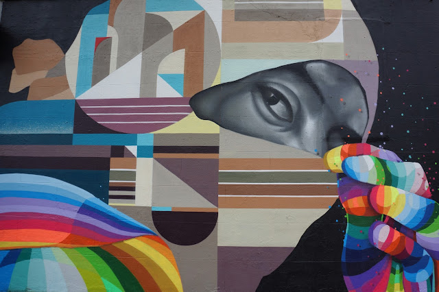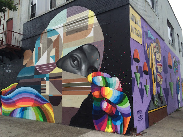 The newly formed duo quickly worked their way through this rainbow piece which is featuring each artist’s distinctive style and imagery. A new sight in the neighborhood which will surely be enjoyed by the local residents.