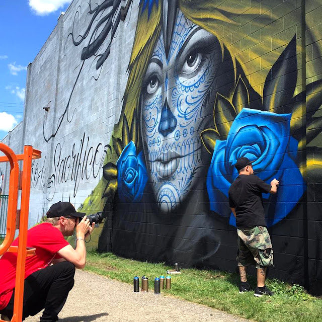 The excellent Wall Therapy Street Art Festival is currently taking place on the streets of Rochester and the first piece to be completed is a brilliant collaboration by Jeff Soto and Maxx242.