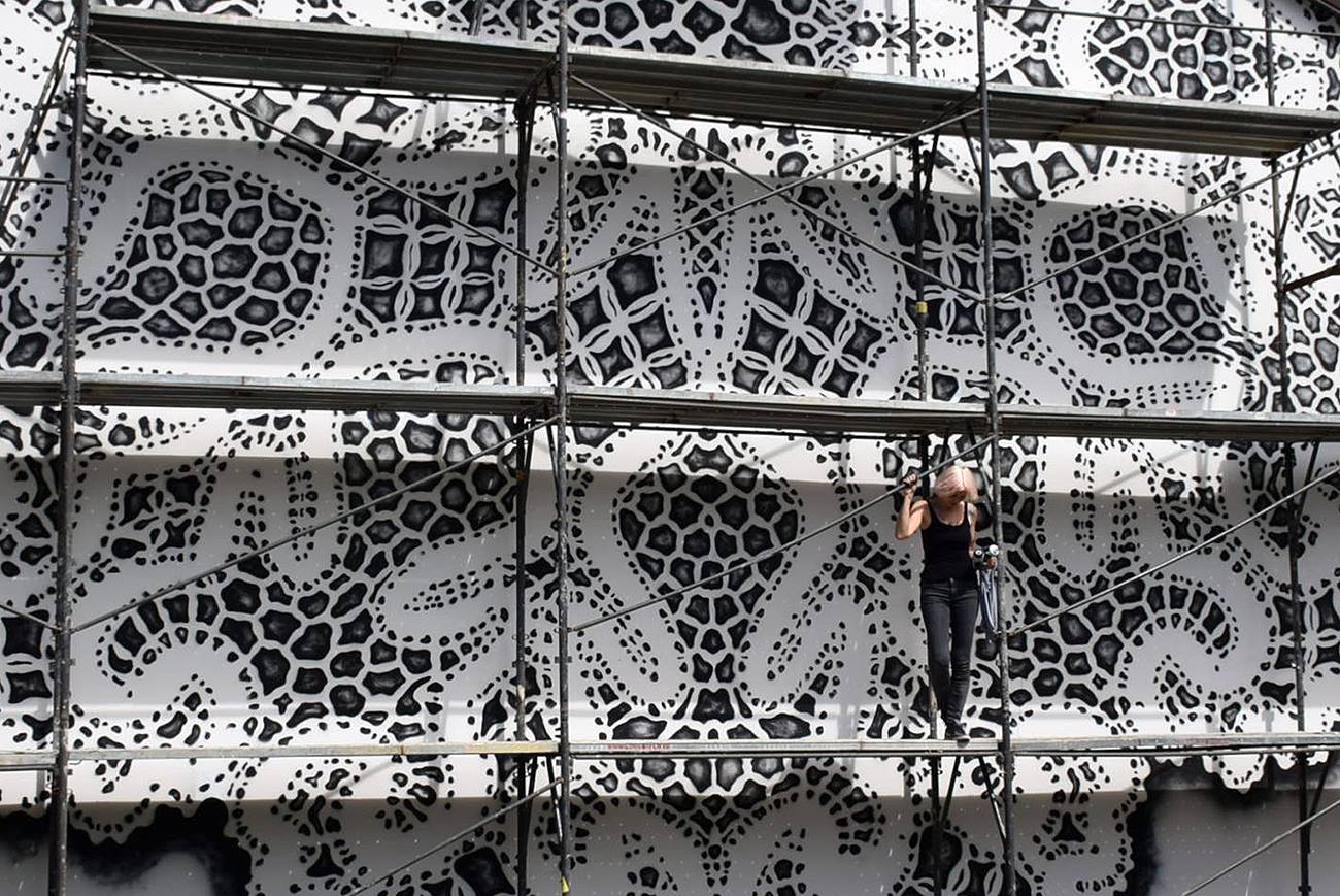 NeSpoon is currently in Poland where she just finished working on a brand new “bobbin laces” mural somewhere on the streets of Bobowa.