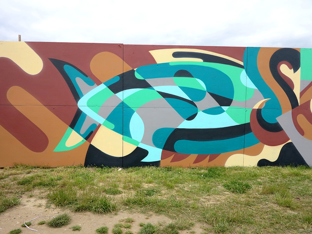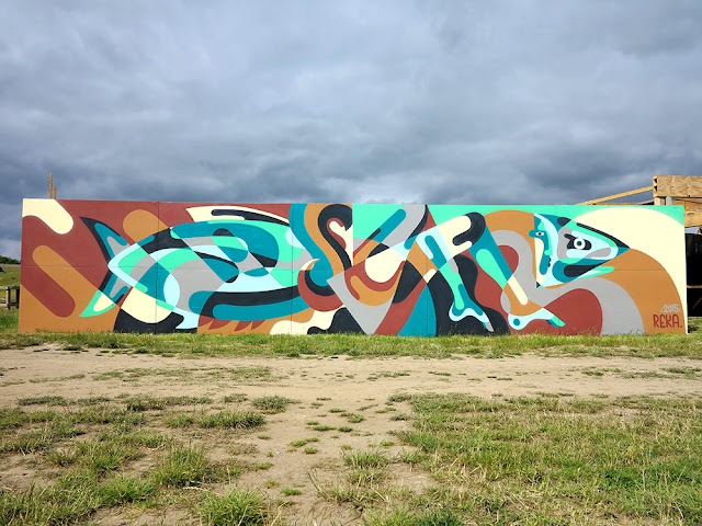 Invited for the Roskilde Festival, the Berlin-based muralist brought to life two brand new artworks which are featuring some of his signature colorful imagery. With influences in pop culture, cartoons and illustration, Reka’s style has become known for its fusion of high and low art. This style emerged from his Pop-Art-influenced logo design background, featuring simple but striking lines and colour ways.